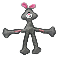 Q: How should I care for the Skele-Ropes Rabbit toy?A: To maintain the Skele-Ropes Rabbit, it's best to regularly inspect the toy for wear and tear. Spot cleaning with mild soap and water can help keep it clean and safe for your pet.