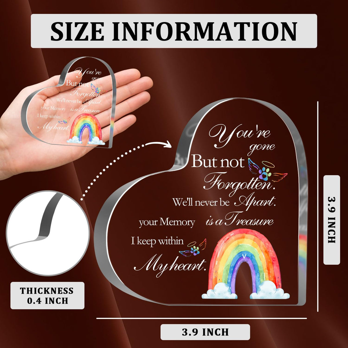 This 5.1X5.1 Inches Heart-Shaped Acrylic Not Only Serves As A Lovely Desktop Decoration But Also Becomes A Keepsake Of Lost Loved , Strengthening The Bond Of Yours.