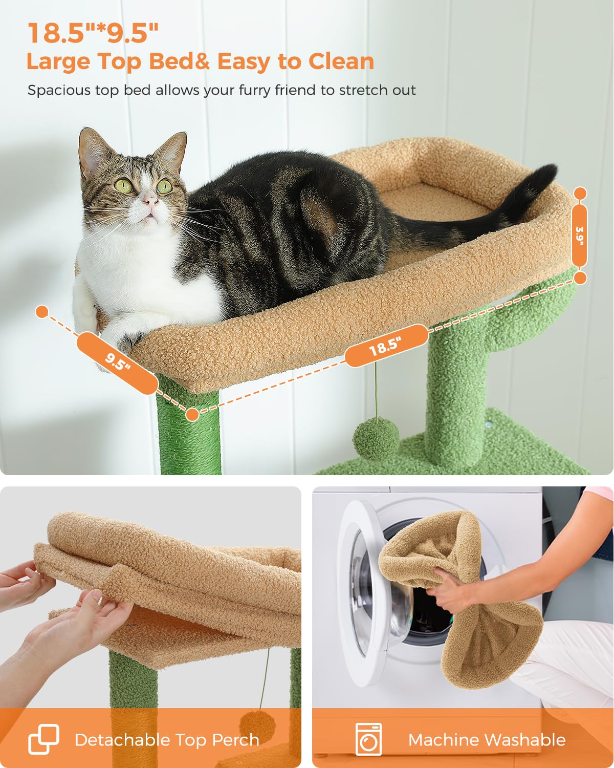 Muttros Cactus Cat Tree For Adult Cats With Super Large Top Perch, 56.3'' Cat Tower For Cats With Plush Hammock, Dangling Pompom