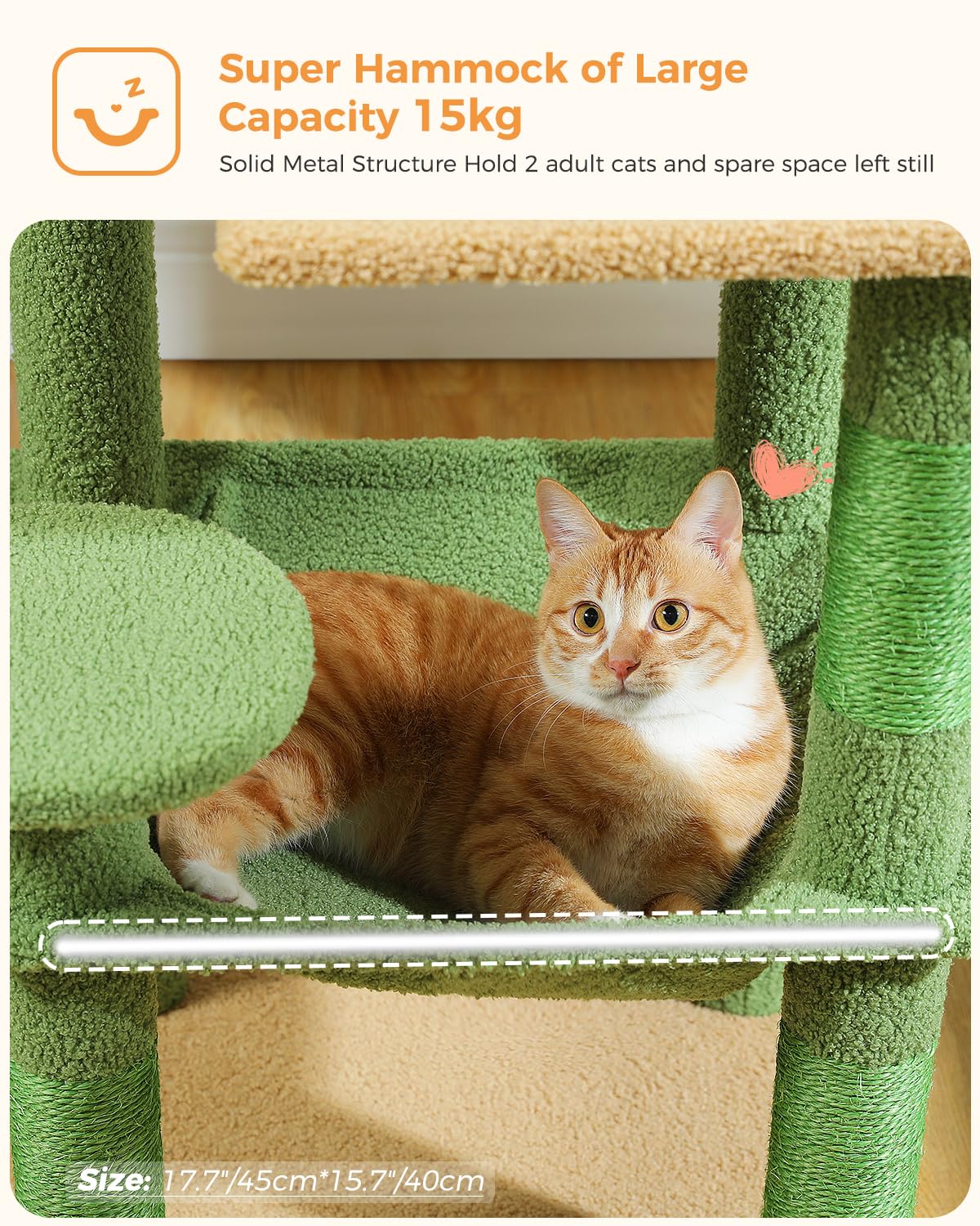 Muttros Cactus Cat Tree For Indoor Cats, 45.7' Multi-Level Cat Tower With Large Metal Frame Hammock, Cat Condo With 4 Scratching Posts And Top Perch For Small Medium Cat, Green
