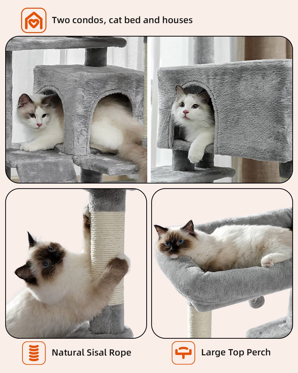 Muttros Cat Tree For Large Cats Adult With Super Large Top Perch, 56.3'' Cat Tower For Large Cats With Plush Hammock, Dangling P