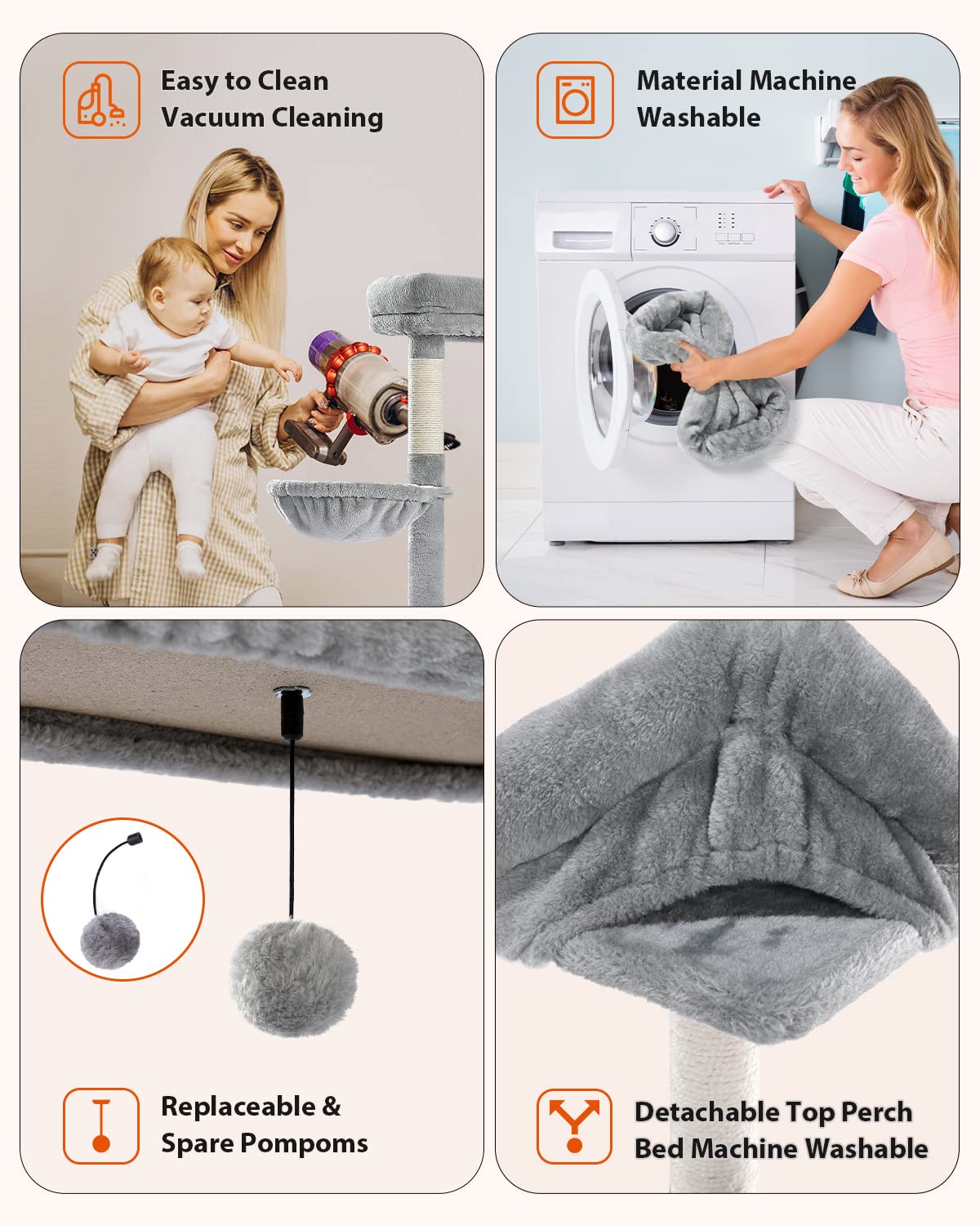 About Us: Mission: Muttros Strive To Bring Colorful Lives For Cats! [Overall Dimensions] [Length]: 55Cm=21.65'' [Width ]: 45Cm=17.71'' [Height]: 143Cm=56.3'' [Specifications] 1X Cat Tree 1X Installation Manual 1X Spare Pompom 1X Set Of Tools And Parts If You Have Any Issue With Muttros Products, Please Contact Us First, Then We Will Make It Right, And See Your Smile Again. [Innovation] Rst = Replaceable Screw Toy, Cats Can Enjoy Them The Whole Life. Cats Love Dangling Toys, Hunting Them Catching Them And Bite Them. Mostly, The Toy'S Life Time Is About 1-3 Month, Maybe Only A Few Days In Aggreesive Cats. The Innovation Is We Re-Design The Toy With Replaceable Screw, So You Can Easily Change It With A New Dangling Ball, And We Gift With 1 Extra Toy Ball, And Of Course You Can Buy More From Muttros.