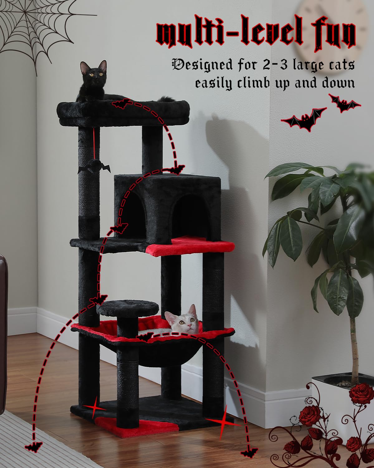 Muttros Gothic Cat Tree With Super Large Hammock, 45.7' Black Cat Tower With Coffin Bed, Cat Condo, Sisal Scratching Posts & Top Perch, Multi-Level Goth Cat Tree, Halloween, Black
