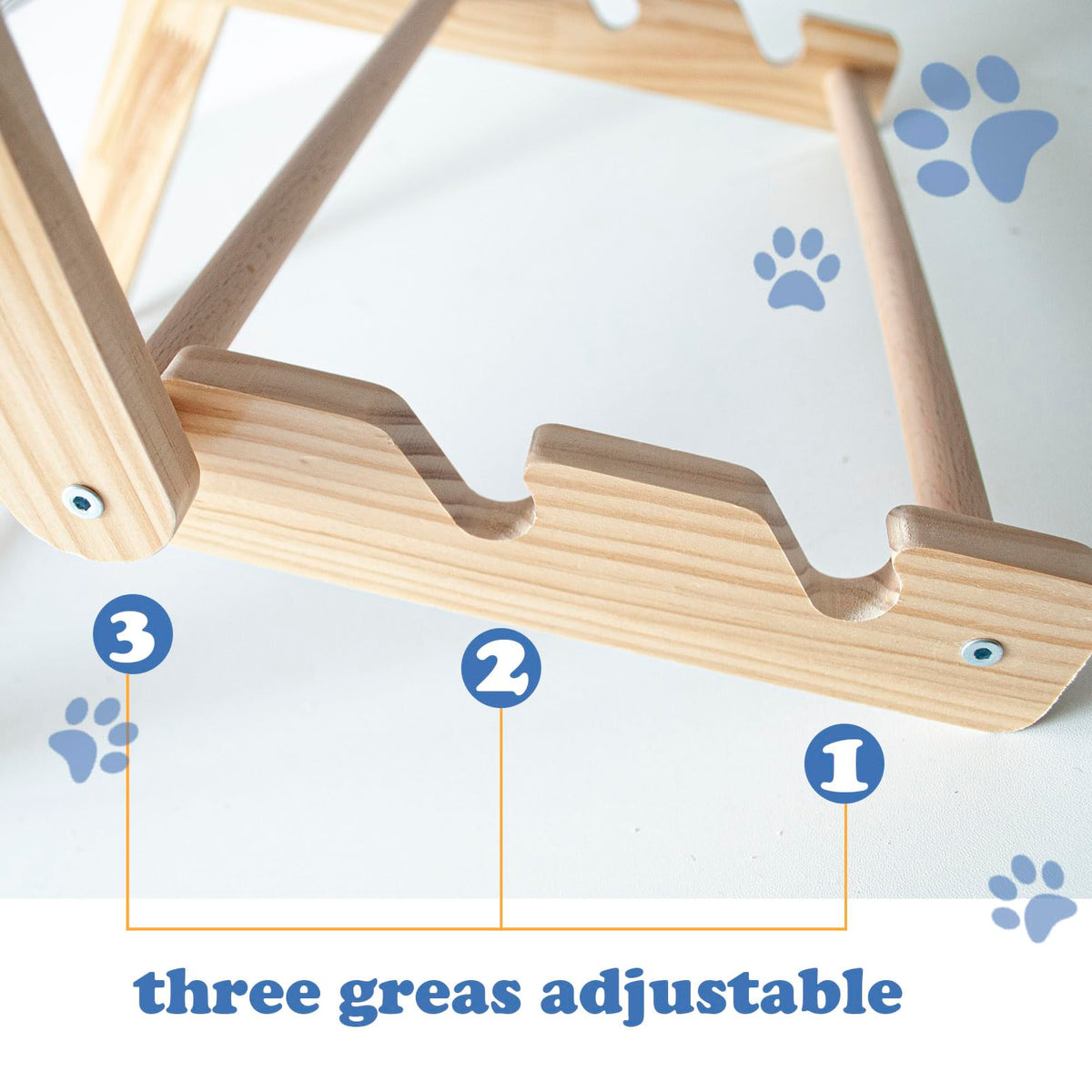 Muyg Wooden Cat Lounge Chair,Natural Solid Wood Elevated Cat Beach Chair With Sturdy Canvas,Adjustable Kitty Hammock Bed For Out