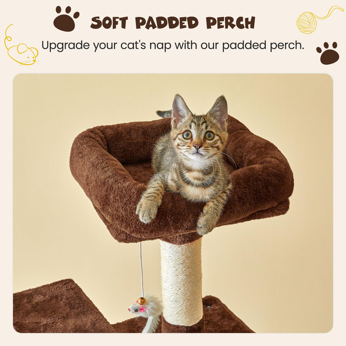 THE ULTIMATE cAT-TAINMENT cENTER - The MWPO 638-Inch cat tree has multiple levels with scratching posts and cozy hideaways making it the ultimate spot for your cat to climb scratch and lounge O MORE ScRATcH- The multi-tiered tower replicates the catAs natural outdoor environment and expends the activity space for cats vertically in your room Frisky cats can jump from perch to perch and climb to the top of the lookout tower carefully placed dangling toys give kitty the thrill of the hunt as she bats them around till her heartAs content ET-FRIENDLY MATERIALS- constructed by high-quality natural particle boards the reinforced base plate skin-friendly plush covering and Natural sisal scratching posts this cat activity tree is designed to offer a safe sturdy and stable home and entertaining center for your little angels UST HAVE FOR FAMILIES WITH MULTIPLE cATS- It can easily house 2-3 mediumlarge cats which is an ideal and cost-effective piece for multi-cat families Overall:638 H x 197 W x 197 L Base Board Size :197 W x 197 L Size of condo:102 H x 11 W x 11 L Weight : 29 lbs cUSTOMER-ORIENTED PRINcIPLE- MWPO provides you with professional customer service both before and after your purchase If you have any not satisfied with our cat tower please contact us we must resolve to your satisfaction this is our first priority