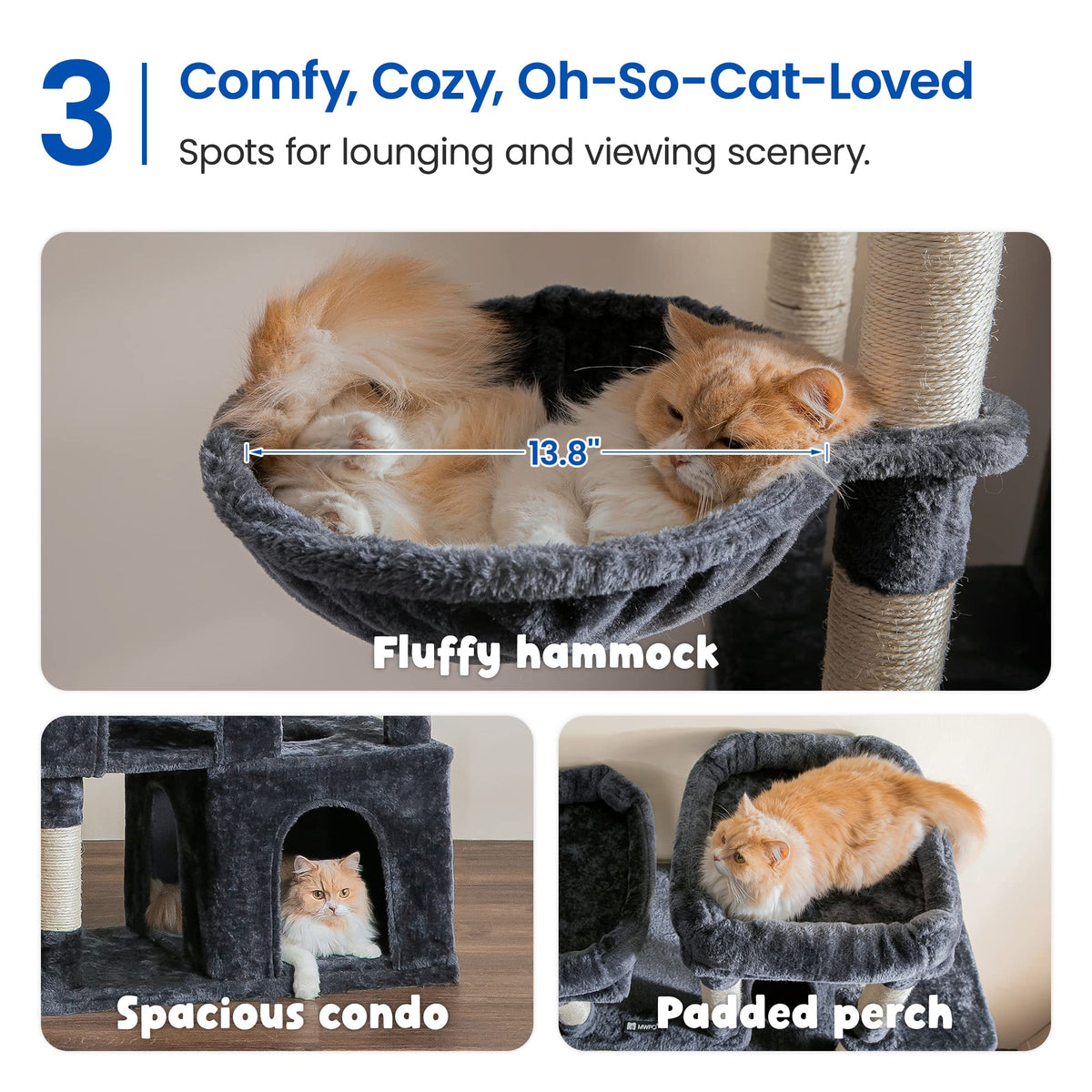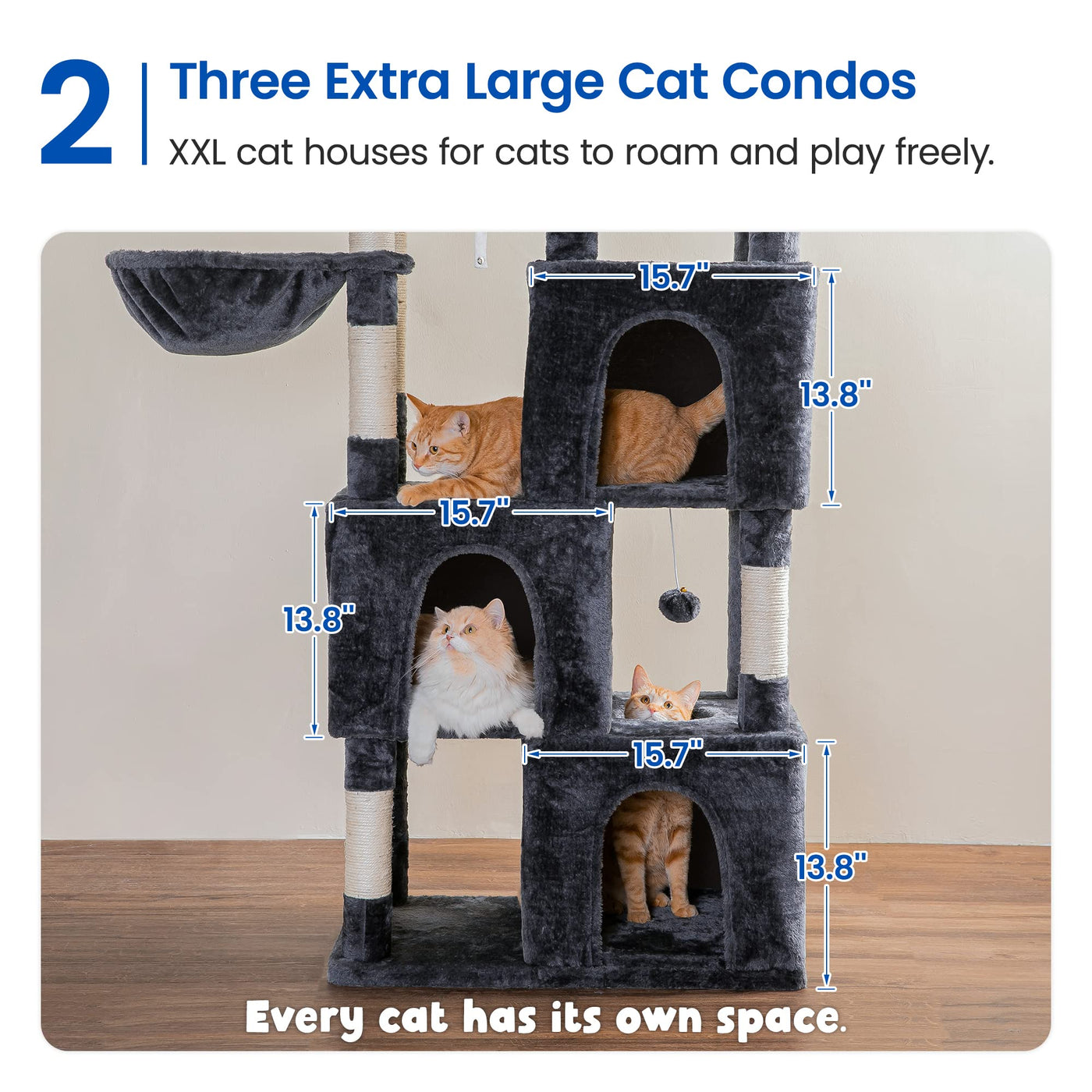 Mwpo Extra Large Cat Tree - 70.1-Inch Tall Cat Tower With 3 Cat Condos, Multi-Level Cat Stand For Large Cats Featuring Scratchin