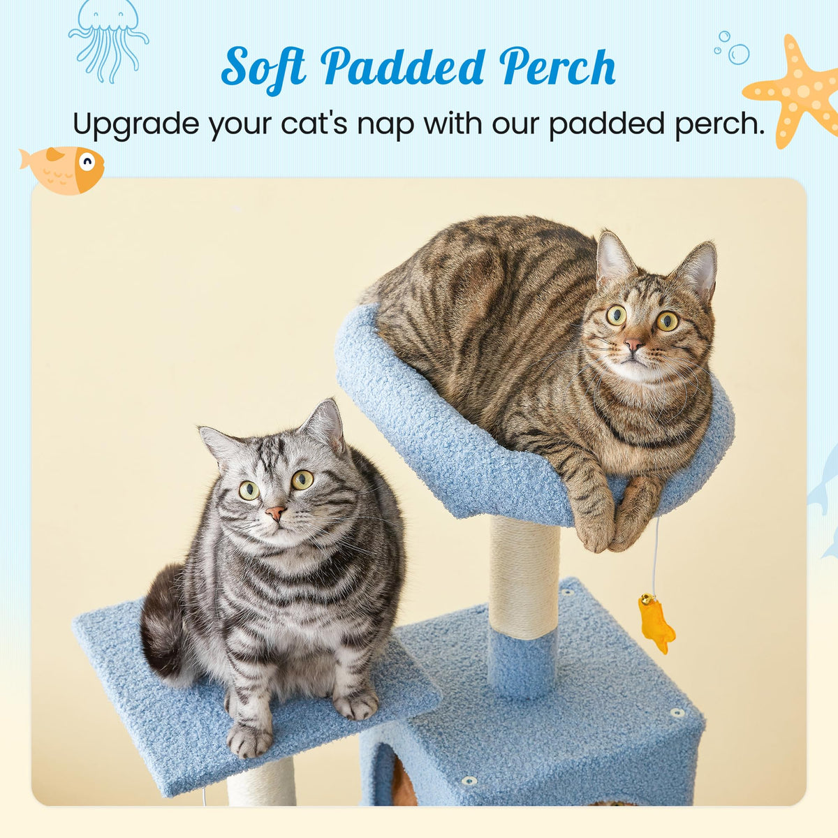 Mwpo Ocean-Themed Cat Tree For Indoor Cats, 63.8 Inches Multi-Level Tower With Sisal-Covered Scratching Posts, Padded Platform,