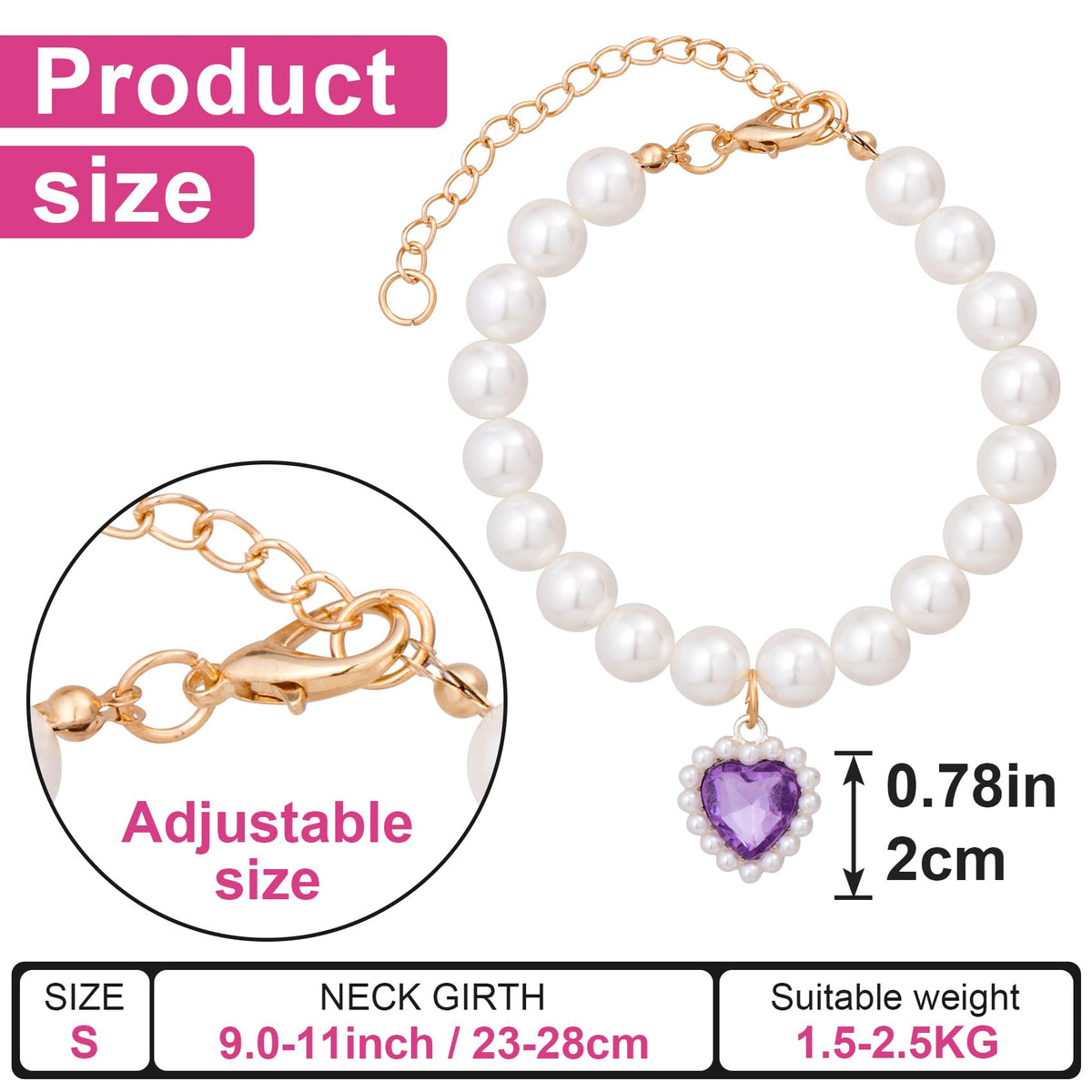Product Description Mxxipp 2Pcs Cat Dog Pearl Collar, Small Heart Shape Rhinestone Pet Necklace, Adjustable Wedding Party Pet Jewelry Accessories For Puppy Small Cats- Purple & Red Specification: Adjustable Size: The Small Pet Pearl Collar Is Suitable For Pets With A Neck Range Of 9'' To 11''. Please Find A Proper Tightness For Your Pets Before Wearing. Please Measure The Neck Girth Of Your Pet Before Ordering! Premium Material: These Adjustable Pet Collars Are Made Of Shiny Artificial Pearls, Rhinestones And Alloy, Excellent Craftmanship, Beautiful And Elegant, Safe And Reliable, Non-Faded, Wear-Resistant, Not Easy To Break, Suitable For Your Furry Pet. Cute Design: The Pearl Pet Collars Are Designed With Heart Shaped Rhinestones, Exquisite Workmanship, And Can Create A Shiny And Charming Outlook Effect For Your Pet. You Can Also Remove The Heart-Shaped Rhinestone If You Don'T Need It. Wide Application: This Cat Pearl Collar Can Be Worn At Theme Parties, Birthday Parties, Weddings Parties, Photo-Taking And Daily Life. Fit For Small Short Haired Pets, Such As Chihuahua, Schnauzer Terrier, Pug, Pomeranian, Small Poodle, Yorkshire, Puppet, Other Small Cats And Dogs. Package Include: 2Pcs Cat Dog Pearl Collar Customer Satisfaction: We Are Committed To Offering High Quality Products And Consideerate Customer Service If You Have Anything Concerned Or Confused With Our Product Orservice. Just Feel Free To Contact Us. We Will Offer You A Satisfactory Answer Within 24 Hours. Here Is The Way To Contact Us: Click The ''Contact Seller'' Button Beside The Order Id. And Send Mespackage Include: Each Package Comes With 2Pcs Pearl Necklace In 2 Colors, Purple Heart Shaped Rhinestone Necklace & Red Heart Shaped Rhinestone Necklace. The Different Styles Can Meet Your Pet'S Diverse Needs Of Decoration, Add A Touch Of Delicate Elegance To Your Cat.Sage To Us.