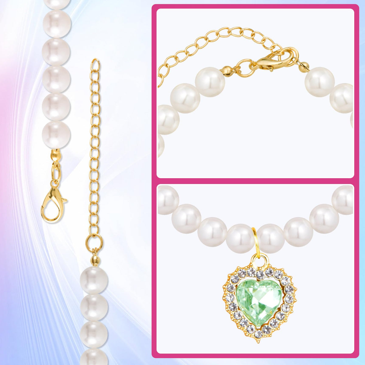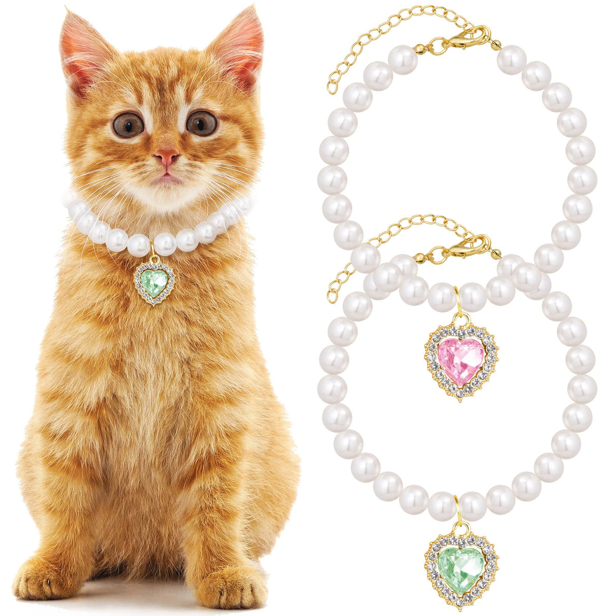 Product Description Mxxipp 2Pcs Pearl Collar For Cat Puppy, Small Cute Heart Shape Rhinestone Pet Necklace, Adjustable Wedding Party Pet Jewelry Accessories For Puppy Kitten- Green & Pink Specification: Adjustable Size: The Small Pet Pearl Collar Is Suitable For Pets With A Neck Range Of 9'' To 11''. Premium Material: These Adjustable Pet Collars Are Made Of Shiny Artificial Pearls, Rhinestones And Alloy, Excellent Craftmanship, Beautiful And Elegant, Safe And Reliable, Non-Faded, Wear-Resistant, Not Easy To Break, Suitable For Your Furry Pet. Cute Design: These Pearl Pet Collars Are Designed With Heart Shaped Rhinestones, Exquisite Workmanship, And Can Create A Shiny And Charming Outlook Effect For Your Pet. You Can Also Remove The Heart-Shaped Rhinestone If You Don'T Need It. Wide Application: This Cat Pearl Collar Can Be Worn At Theme Parties, Birthday Parties, Weddings Parties, Photo-Taking And Daily Life. Fit For Small Short Haired Pets, Such As Chihuahua, Schnauzer Terrier, Pug, Pomeranian, Small Poodle, Yorkshire, Puppet, Other Small Cats And Dogs. Package Include: 2Pcs Cat Dog Pearl Collar Customer Satisfaction: We Are Committed To Offering High Quality Products And Consideerate Customer Service If You Have Anything Concerned Or Confused With Our Product Orservice. Just Feel Free To Contact Us. We Will Offer You A Satisfactory Answer Within 24 Hours. Here Is The Way To Contact Us: Click The ''Contact Seller'' Button Beside The Order Id. And Send Message To Us.