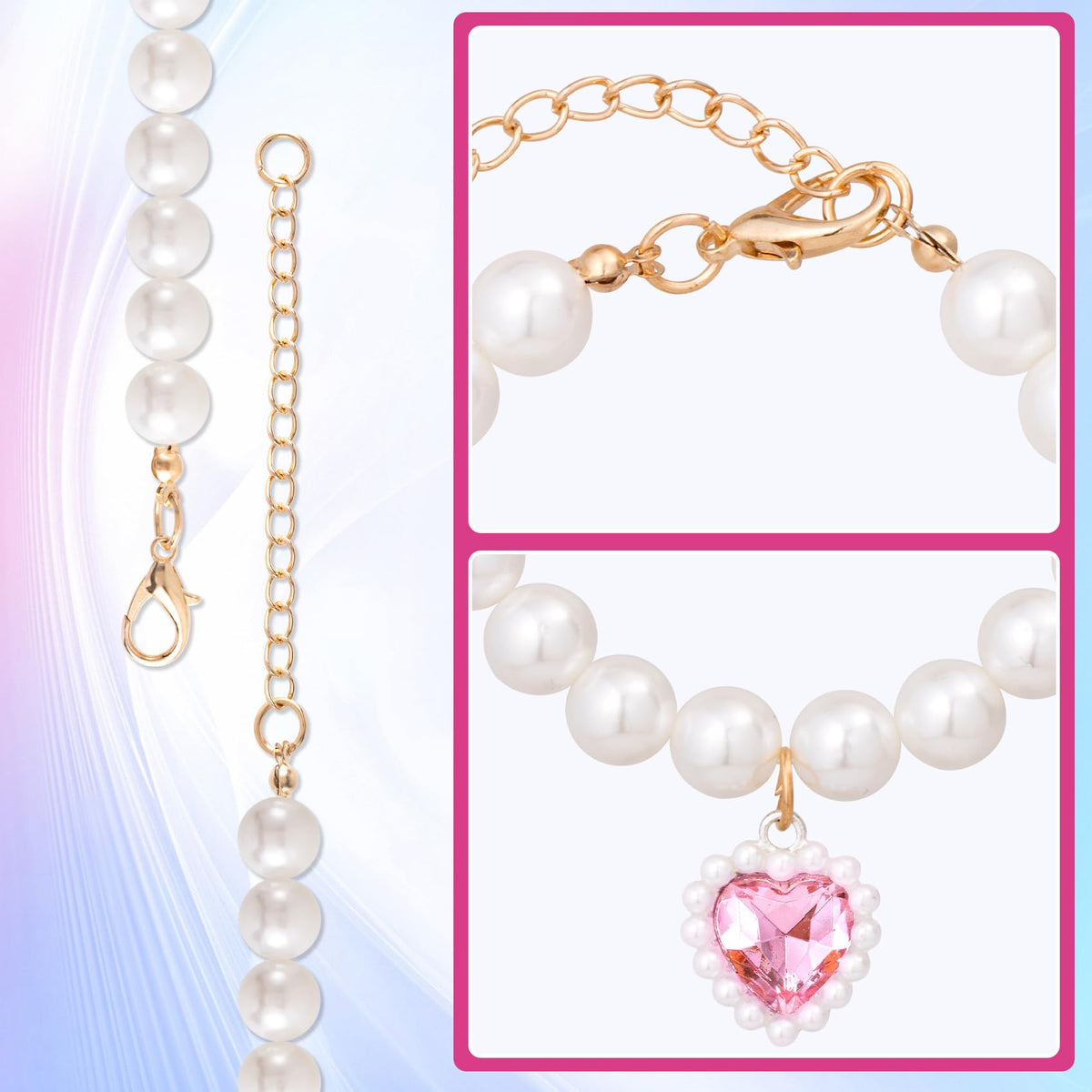 Product Description Mxxipp Cat Pearl Collar With Heart Pendant, Cute Pearl Pet Necklace In Medium, Adjustable Wedding Party Small Dog Jewelry Accessories For Puppy Kitten- Pink Specification: Adjustable Size: The Small Pet Artificial Pearl Collar Is Suitable For Pets With A Neck Range Of 9.9 To 11.8. Premium Material: These Adjustable Pet Collars Are Made Of Shiny Artificial Pearls, Rhinestones And Alloy, Excellent Craftmanship, Beautiful And Elegant, Safe And Reliable, Non-Faded, Wear-Resistant, Not Easy To Break, Suitable For Your Furry Pet. Cute Design: These Artificial Pearl Pet Collars Are Designed With Heart Shaped Rhinestones, Exquisite Workmanship, And Can Create A Shiny And Charming Outlook Effect For Your Pet. You Can Also Remove The Heart-Shaped Rhinestone If You Don'T Need It. Wide Application: This Cat Artificial Pearl Collar Can Be Worn At Theme Parties, Birthday Parties, Weddings Parties, Photo-Taking And Daily Life. Fit For Small Short Haired Pets, Such As Chihuahua, Schnauzer Terrier, Pug, Pomeranian, Small Poodle, Yorkshire, Puppet, Other Small Cats And Dogs. Package Include: Pink Cat Dog Pearl Collar Customer Satisfaction: We Are Committed To Offering High Quality Products And Consideerate Customer Service If You Have Anything Concerned Or Confused With Our Product Orservice. Just Feel Free To Contact Us. We Will Offer You A Satisfactory Answer Within 24 Hours. Here Is The Way To Contact Us: Click The Contact Seller Button Beside The Order Id. And Send Message To Us.