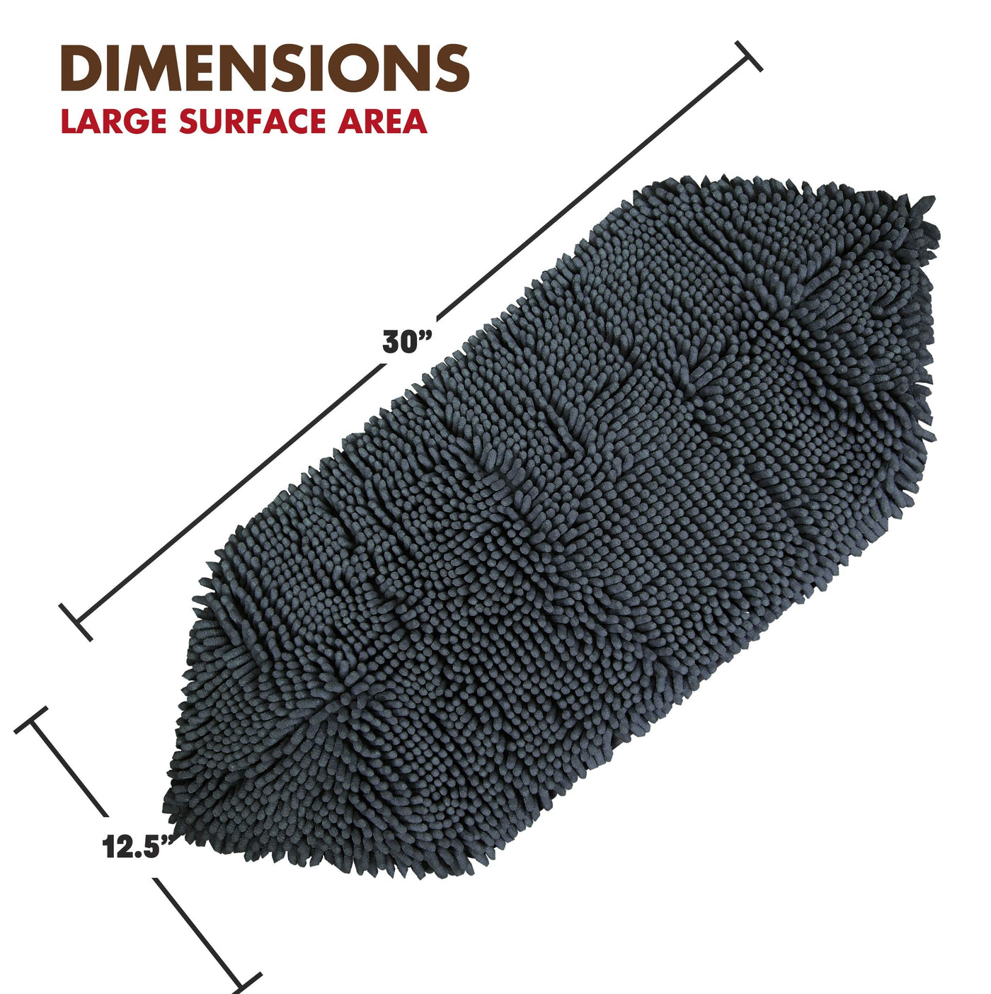 Q: What size is the dog towel and is it suitable for all dog breeds?A: The towel measures 30 x 12.5 inches and is designed to fit all dog sizes with its 'one size fits all' feature, making it versatile for various breeds.