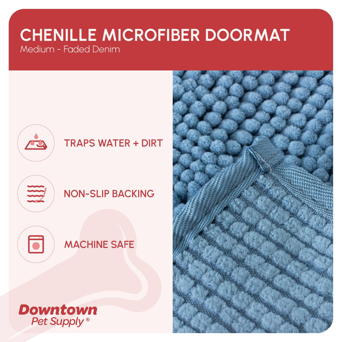 My Doggy Place Medium Faded Denim Microfiber Dog Mat, 31'' X 20'', Absorbent And Quick-Drying, Non-Slip Rubber Backed, Machine W