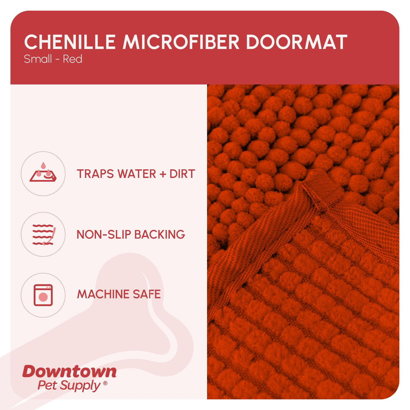 My Doggy Place ultra-absorbent dog mat is your solution to clean and inviting entryways. This non-slip dog mat enhances your homes aesthetic appeal and tackles the toughest messes with ease. Its long microfiber strands effortlessly trap water, mud, and dirt, preventing them from being tracked inside. The double stitching in this absorbent mat ensures its ability to withstand heavy foot traffic and everyday use, ensuring long-lasting durability. Our pet mat incorporates a non-slip rubber backing for stability and peace of mind so you can confidently step on and off the mat without worrying about slips or falls. Unlike ordinary dog mats, our chenille microfiber dog mat is five times more absorbent, allowing it to soak moisture and dry quickly. Say goodbye to soggy, damp mats and hello to a clean and dry entryway. With its washer and dryer-safe design, this dog mud mat is easy to clean, ensuring a consistently fresh and inviting atmosphere in your home. This versatile mat is also suitable for both indoor and outdoor use, adapting to any space in your home. At the same time, its soft and plush texture adds a touch of elegance and comfort, making it a welcoming sight for you and your guests.