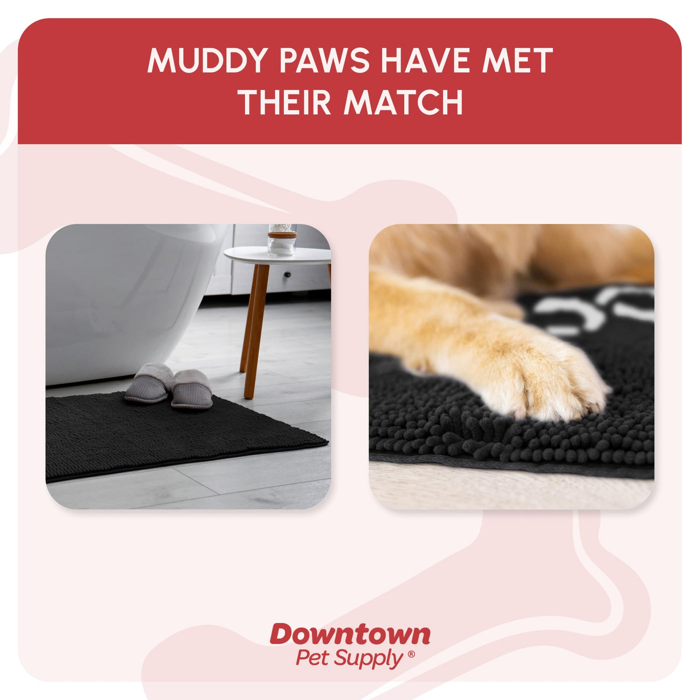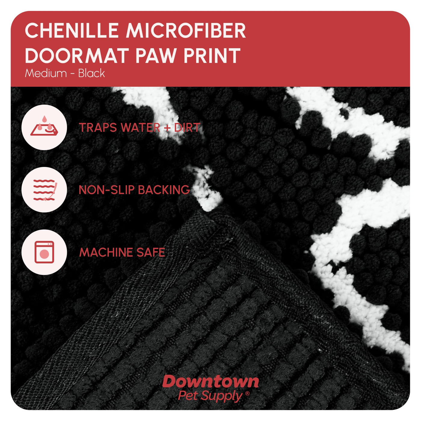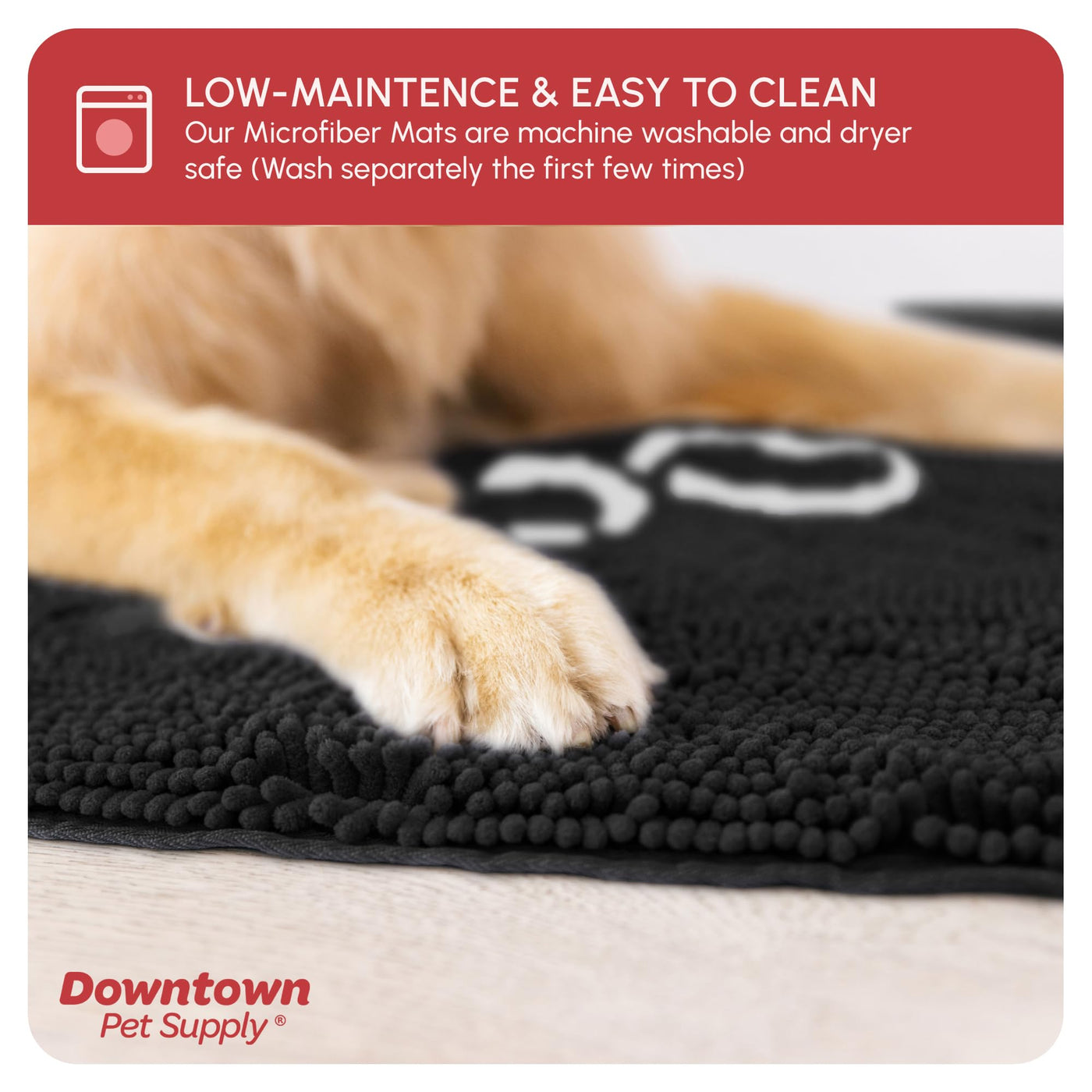 My Doggy Place Microfiber Dog Mat for Muddy Paws, 31 x 20 Black With Paw Print - Absorbent, Quick-Drying Paw Cleaning, Washer an