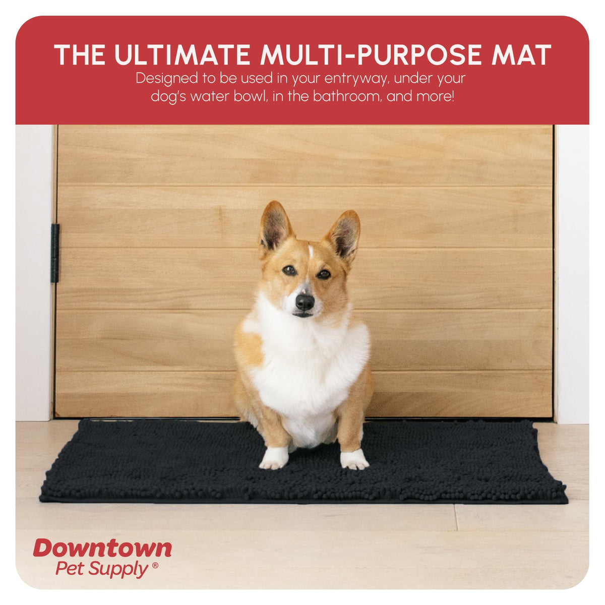 My Doggy Place ultra-absorbent dog mat is your solution to clean and inviting entryways. This non-slip dog mat enhances your homes aesthetic appeal and tackles the toughest messes with ease. Its long microfiber strands effortlessly trap water, mud, and dirt, preventing them from being tracked inside. The double stitching in this absorbent mat ensures its ability to withstand heavy foot traffic and everyday use, ensuring long-lasting durability. Our pet mat incorporates a non-slip rubber backing for stability and peace of mind so you can confidently step on and off the mat without worrying about slips or falls. Unlike ordinary dog mats, our chenille microfiber dog mat is five times more absorbent, allowing it to soak moisture and dry quickly. Say goodbye to soggy, damp mats and hello to a clean and dry entryway. With its washer and dryer-safe design, this dog mud mat is easy to clean, ensuring a consistently fresh and inviting atmosphere in your home. This versatile mat is also suitable for both indoor and outdoor use, adapting to any space in your home. At the same time, its soft and plush texture adds a touch of elegance and comfort, making it a welcoming sight for you and your guests.