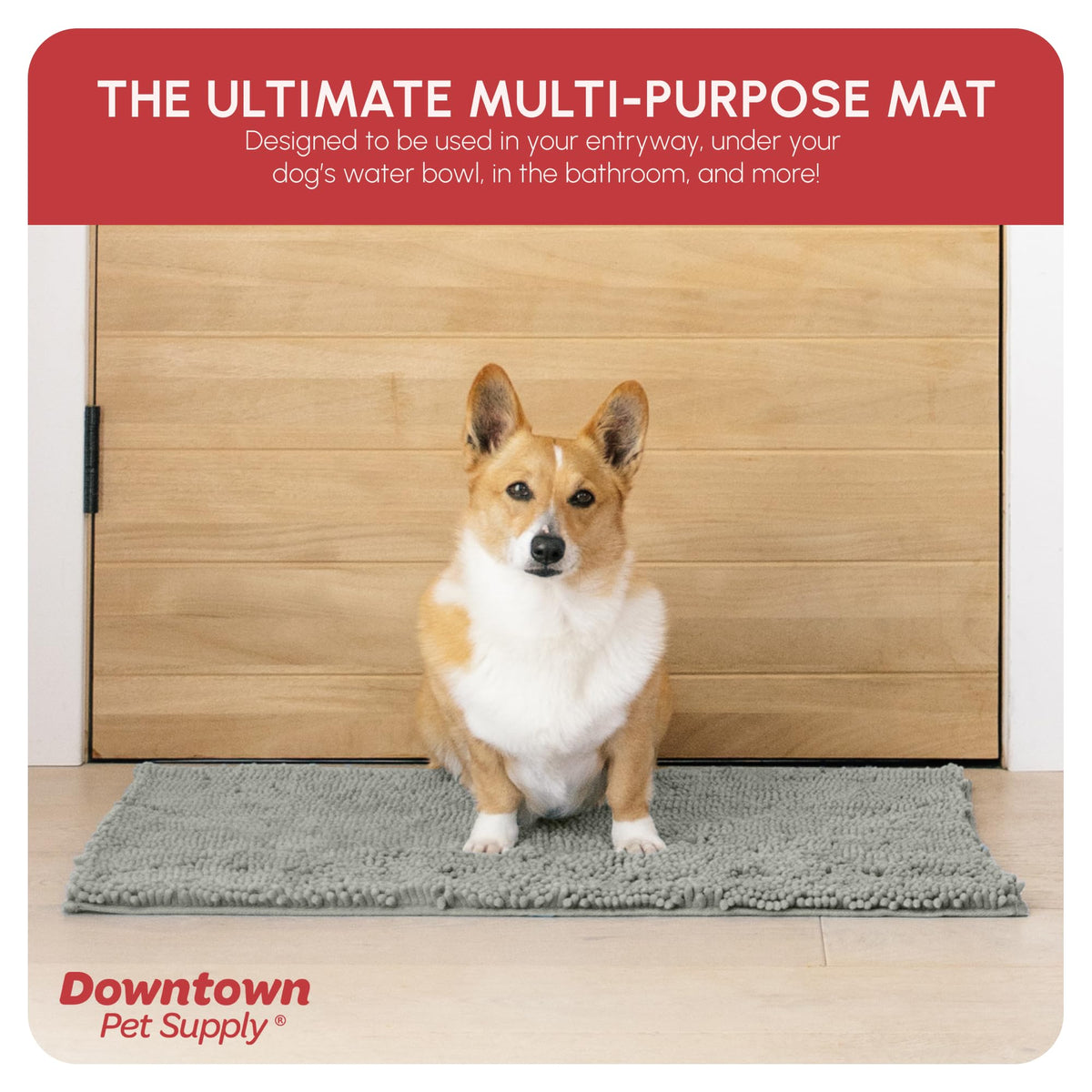My Doggy Place ultra-absorbent dog mat is your solution to clean and inviting entryways. This non-slip dog mat enhances your homes aesthetic appeal and tackles the toughest messes with ease. Its long microfiber strands effortlessly trap water, mud, and dirt, preventing them from being tracked inside. The double stitching in this absorbent mat ensures its ability to withstand heavy foot traffic and everyday use, ensuring long-lasting durability. Our pet mat incorporates a non-slip rubber backing for stability and peace of mind so you can confidently step on and off the mat without worrying about slips or falls. Unlike ordinary dog mats, our chenille microfiber dog mat is five times more absorbent, allowing it to soak moisture and dry quickly. Say goodbye to soggy, damp mats and hello to a clean and dry entryway. With its washer and dryer-safe design, this dog mud mat is easy to clean, ensuring a consistently fresh and inviting atmosphere in your home. This versatile mat is also suitable for both indoor and outdoor use, adapting to any space in your home. At the same time, its soft and plush texture adds a touch of elegance and comfort, making it a welcoming sight for you and your guests.