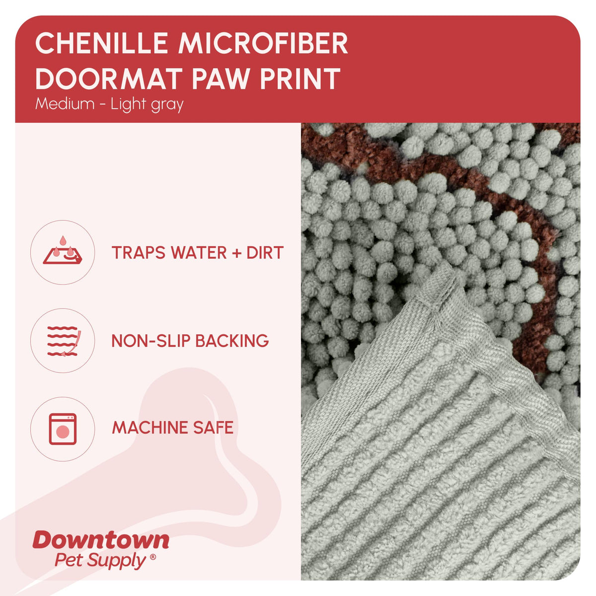 My Doggy Place Microfiber Dog Mat for Muddy Paws, 31 x 20 Light Gray with Paw Print - Absorbent and Quick-Drying Dog Paw Cleanin