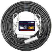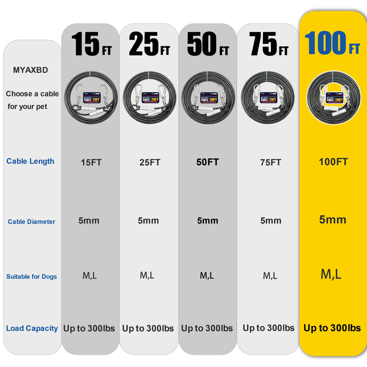 The 100 Ft Heavy-Duty Dog Tie-Out Cable Provides Large Dogs With Safe, Tangle-Free Freedom To Roam Outdoors, Featuring Rust-Resistant Coating, A Durable 360 Rotating Steel Buckle, And Double Steel Ring Compression Interfaces For Added Strength.