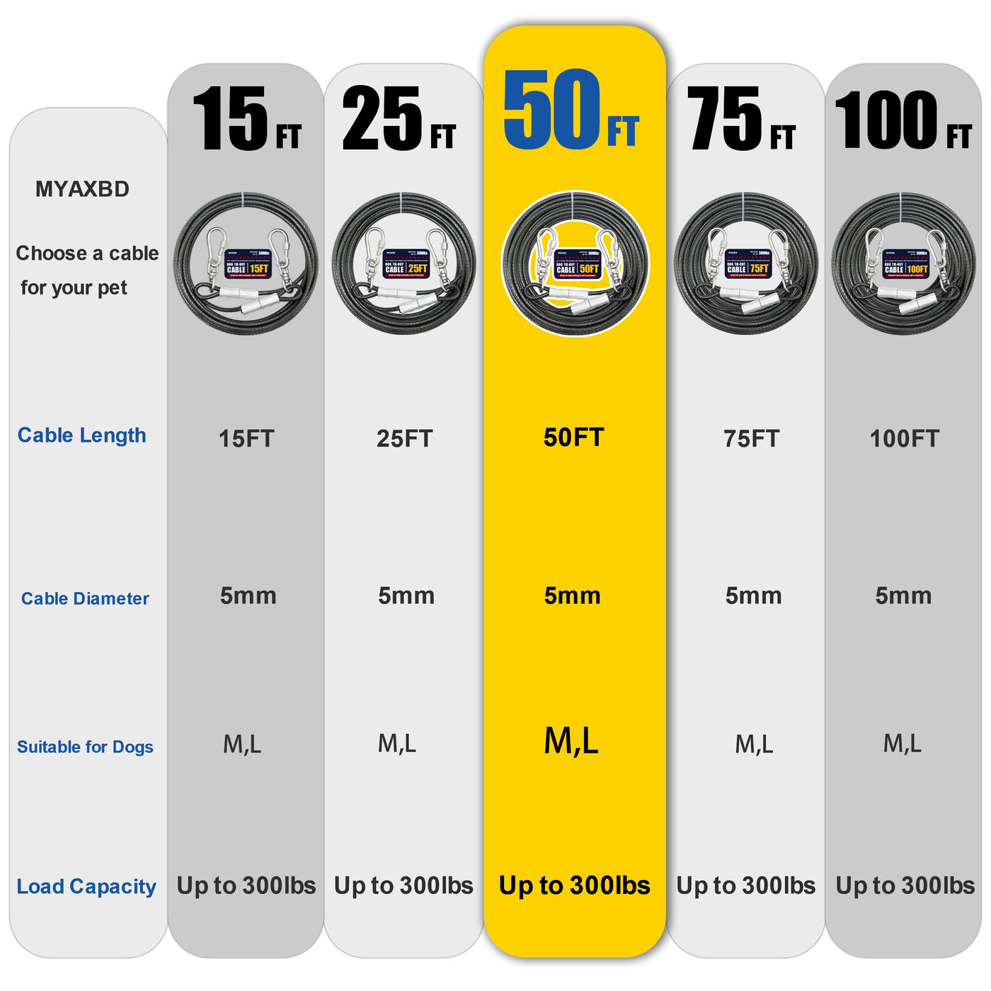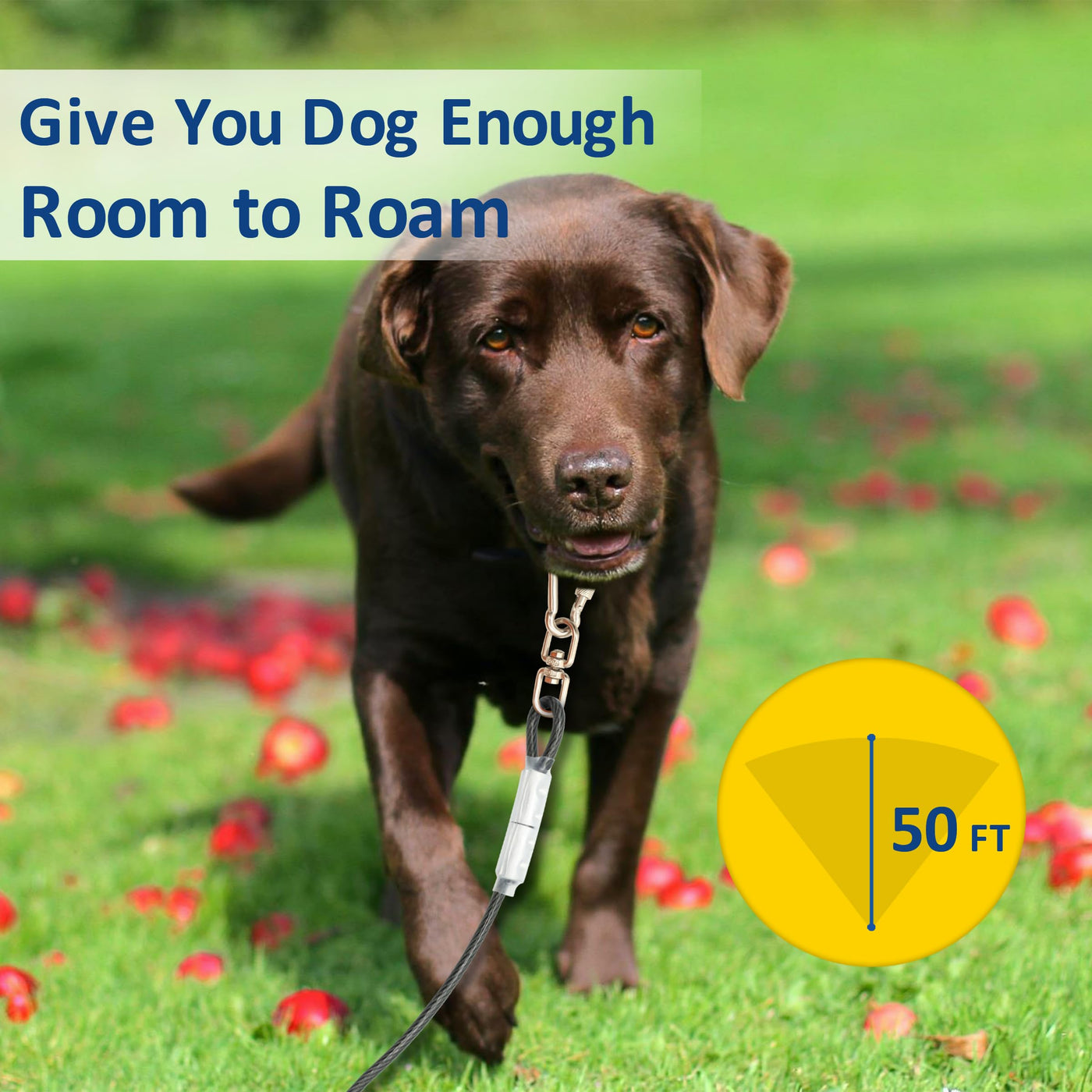 This 50Ft Heavy-Duty Dog Tie-Out Cable Is Designed For Medium And Large Dogs, Offering A Safe And Durable Solution For Outdoor Use In Yards, Campsites, And More.
