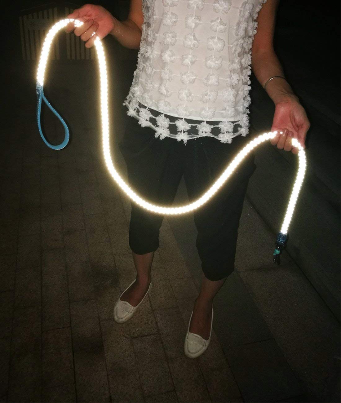 Q: How does the reflective feature work on this dog leash?A: The Mycicy Reflective Rope Leash features added reflective stitching that lights up when exposed to any light at night. This reflective quality enhances visibility and safety during nighttime walks.