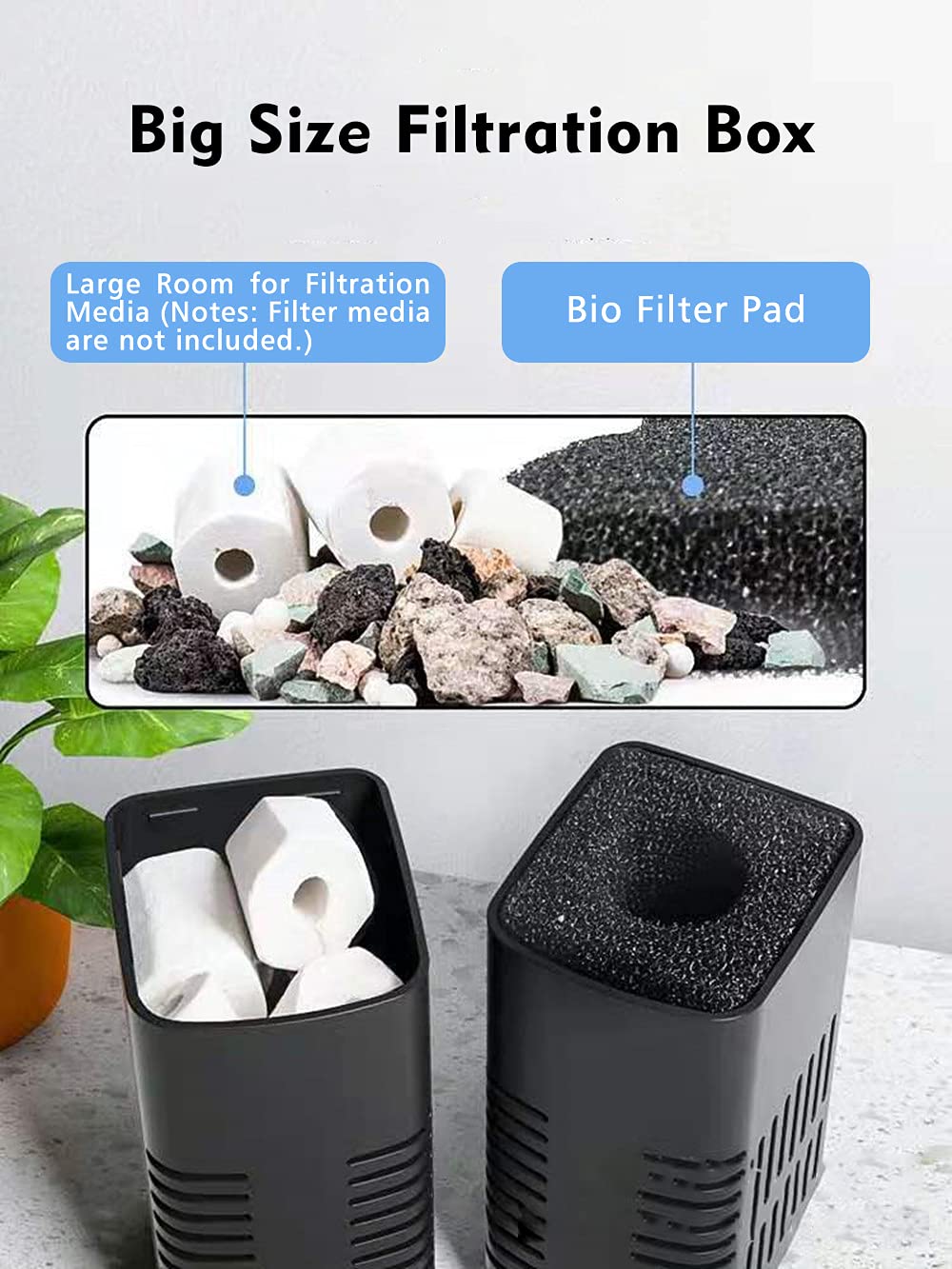 Notes: Must place the pump head UNDER the water level to prevent overheat of pump. The pump works under 110V and has a USA standard plug, NOT for Australia Market. Oxygen Supply: the filter would add oxygen to the water and improve growth of fish. It also provides oxygen to beneficial microbes in water filtration and ensure the water to be crystal clear. Ultra Quiet: Running with very low noise, good for room tanks. Wide Applications: Suitable for marine and freshwater aquariums. The filter could be lift up or laid down, which could be used in fish tank or low water level turtle tank. Multiple Filter Box: the filter boxes could be easily set up or cleaned. Multiple boxes have more room for filter media and filter cartridges. Multi-functional: The filter have both filter and air bump functions. You can easily switch from filter only function to multi-functional modes by adjusting the air tube. Submersible Water Pump: You can lay down the filter at the bottom of the aquarium and use it as a water pump.