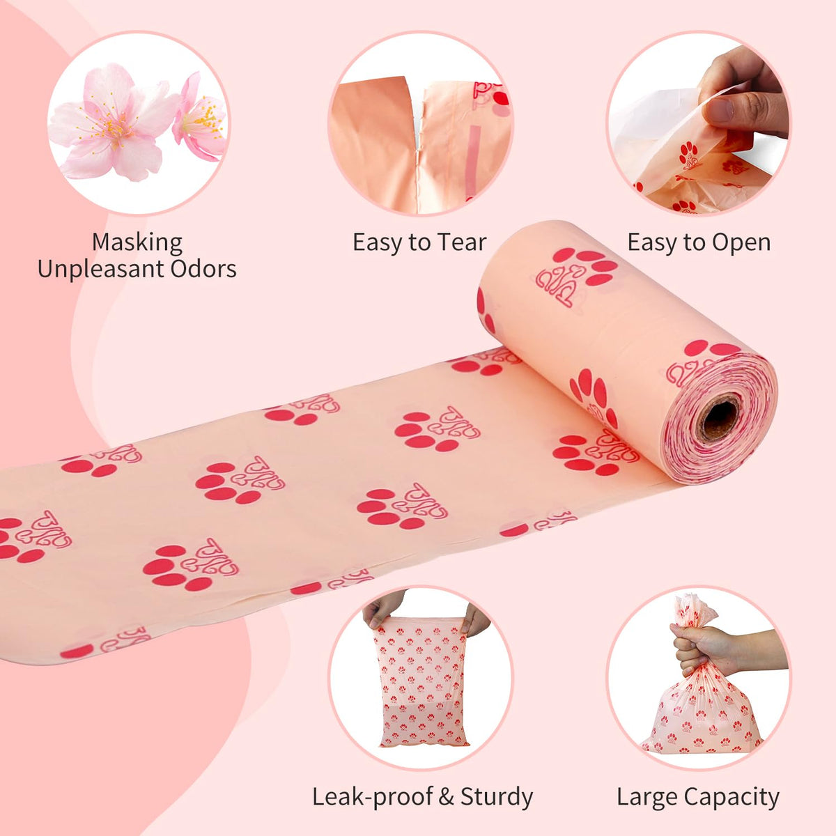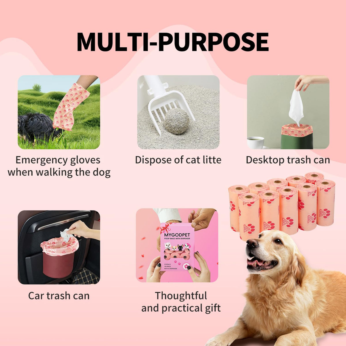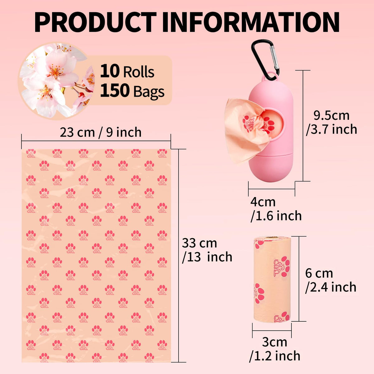 Mygodpet Dog Poop Bags Rolls With Dispenser 150 Count Biodegradable Poop Bags For Dog And Cat Cherry Blossom Scented Waste Bag L