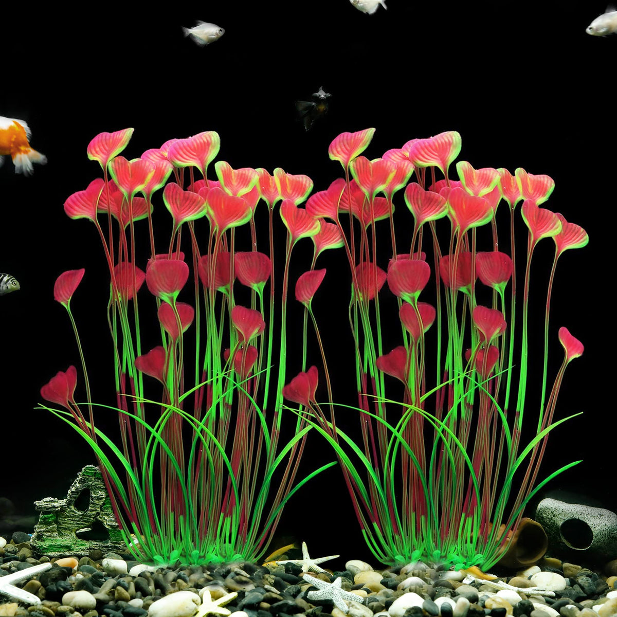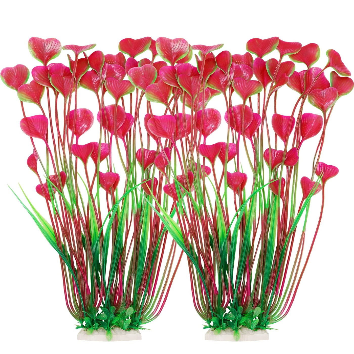 MyLifeUNIT Aquarium Plants, 2 Pack Tall Plastic Plants for Fish Tank Decorations, 15.75 Inches (Pink)
