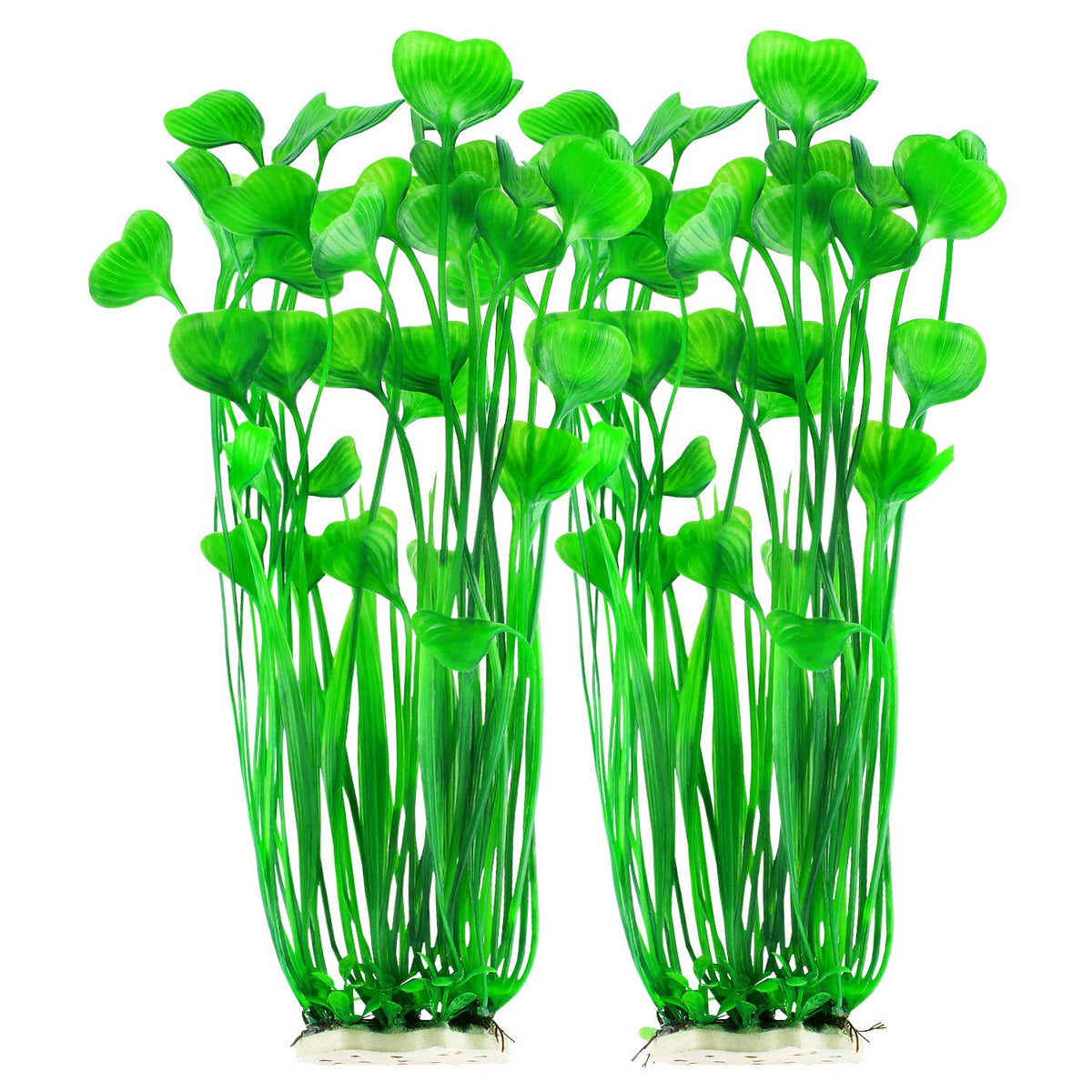 Mylifeunit Plastic Fish Tank Plants, 2 Pack Artificial Tall Aquarium Plants For Fish Tank Decor, 15.75 Inches (Green)