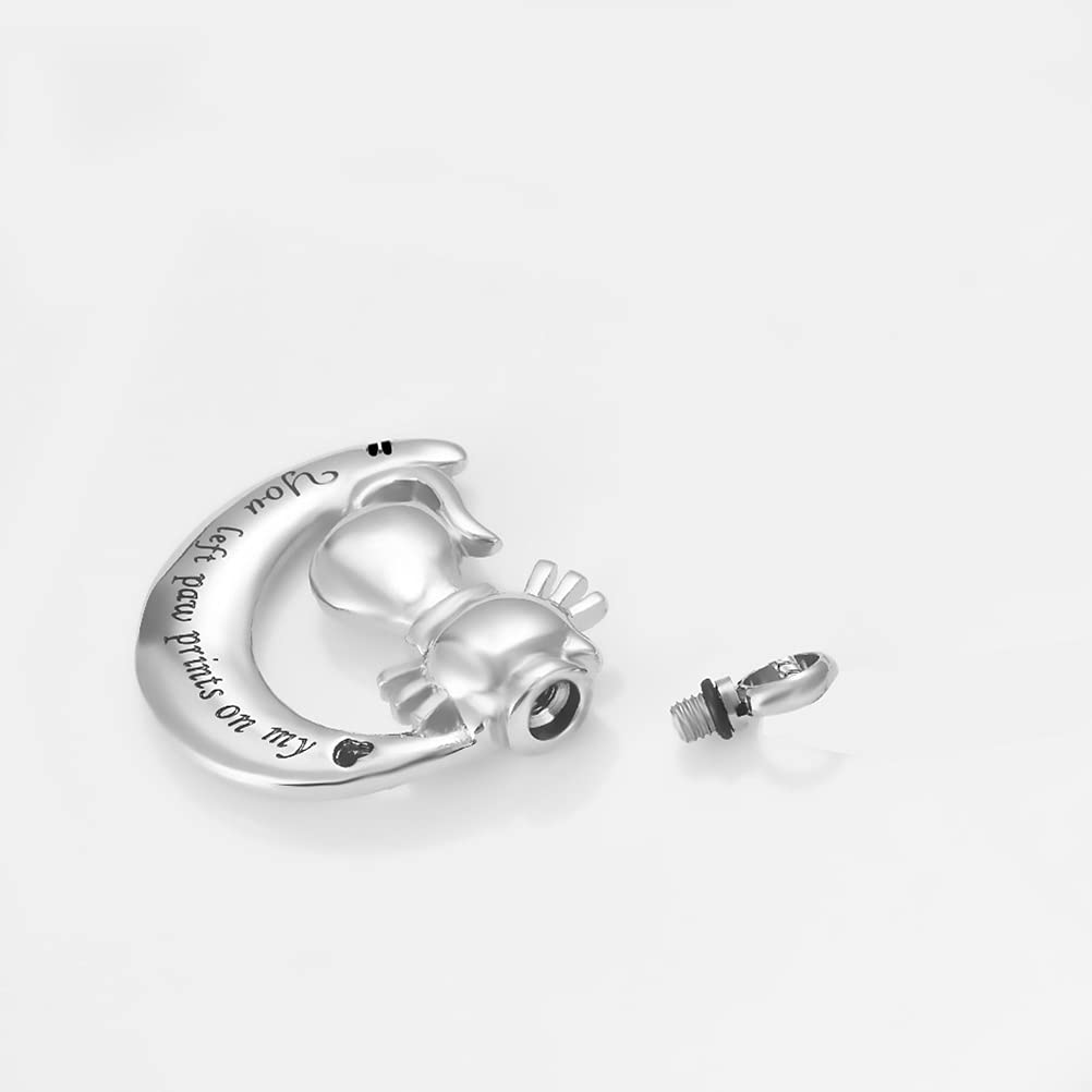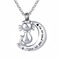Mzc Jewelry Pet Cat Cremation Urn Necklace For Ashes You Left Paw Prints On My Heart Keepsake Pendant Ashes Holder For Women Men