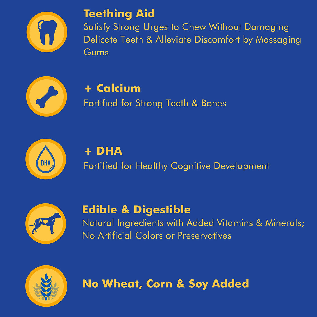 Pliable texture is safe for puppy's new teeth and helps soothe teething pain and sore gums