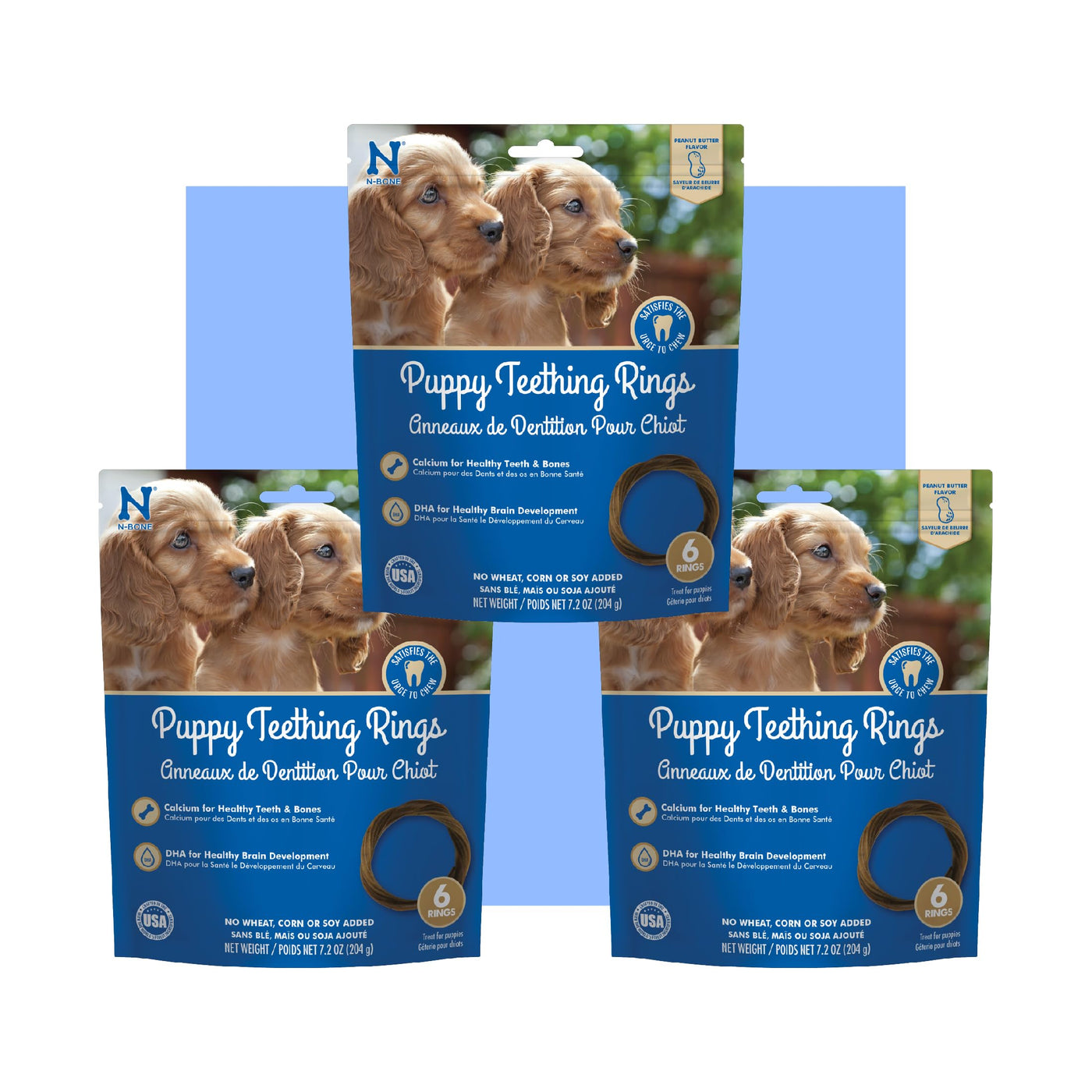 N-Bone Puppy Teething Rings Peanut Butter Flavor 6 Count Bag Multi Pack, Total 3 Bags, 21.6-oz (18 Rings)
