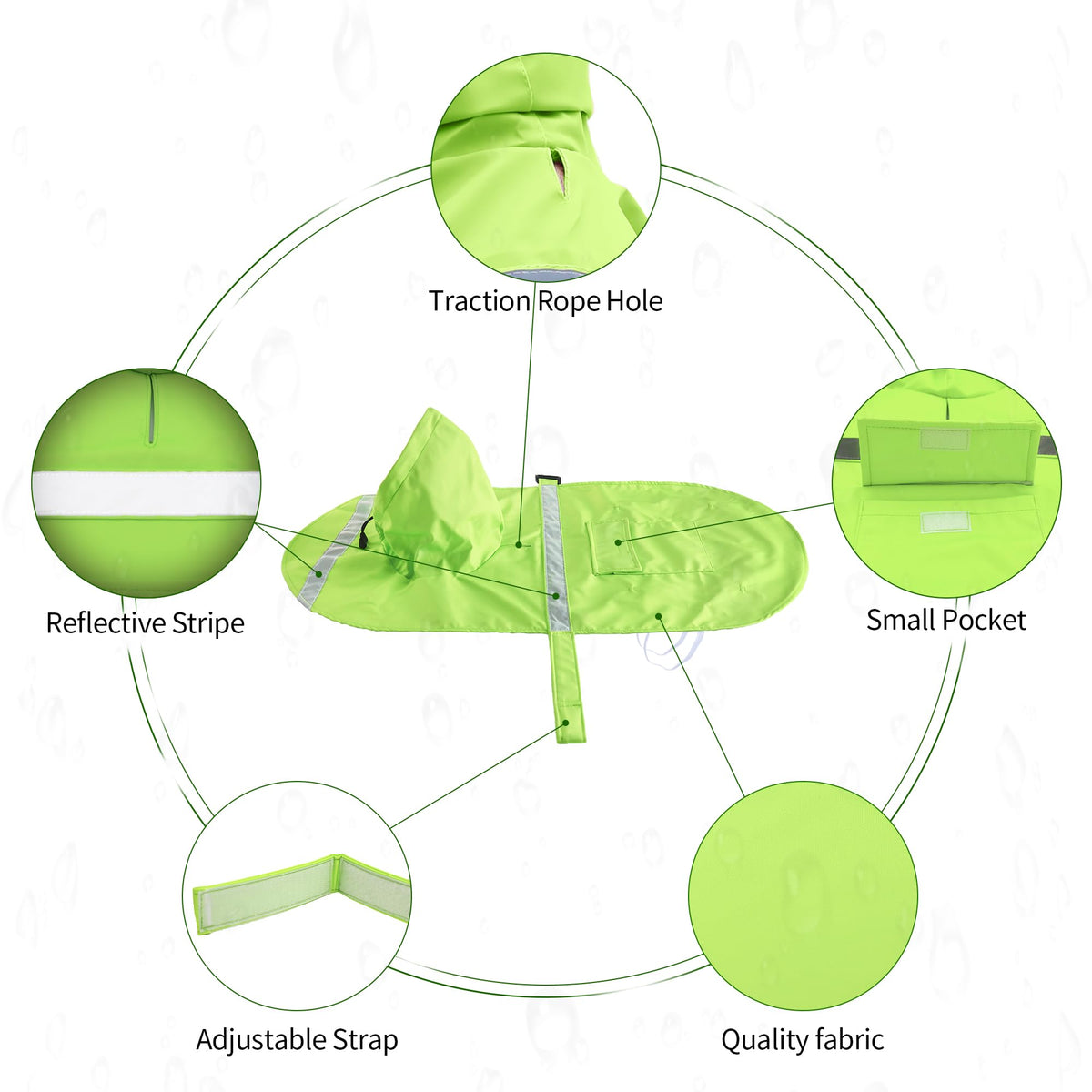 Large Dog Raincoat Brand: Nacoco Size: M-3Xl Color: Green Design: A Reflective Type On Back, Ensure Your Pets Can Be Seen At Night/In The Dark Size Chart: Size M: Back Length: 14.0; Chest: 18.0; Neck: 12.5 Size L: Back Length: 17.0; Chest: 22.0; Neck: 16.5 Size Xl: Back Length: 20.0; Chest: 26.0; Neck: 19.5 Size 2Xl: Back Length: 24.0; Chest: 30.0; Neck: 22.5 Size 3Xl: Back Length: 29.0; Chest: 35.0; Neck: 26.5 Note: Please Measure Your Dog'S Size Carefully And Choose The Right Size. There Will Be An Error Of 0.8-1.2In. Thank You For Your Understanding