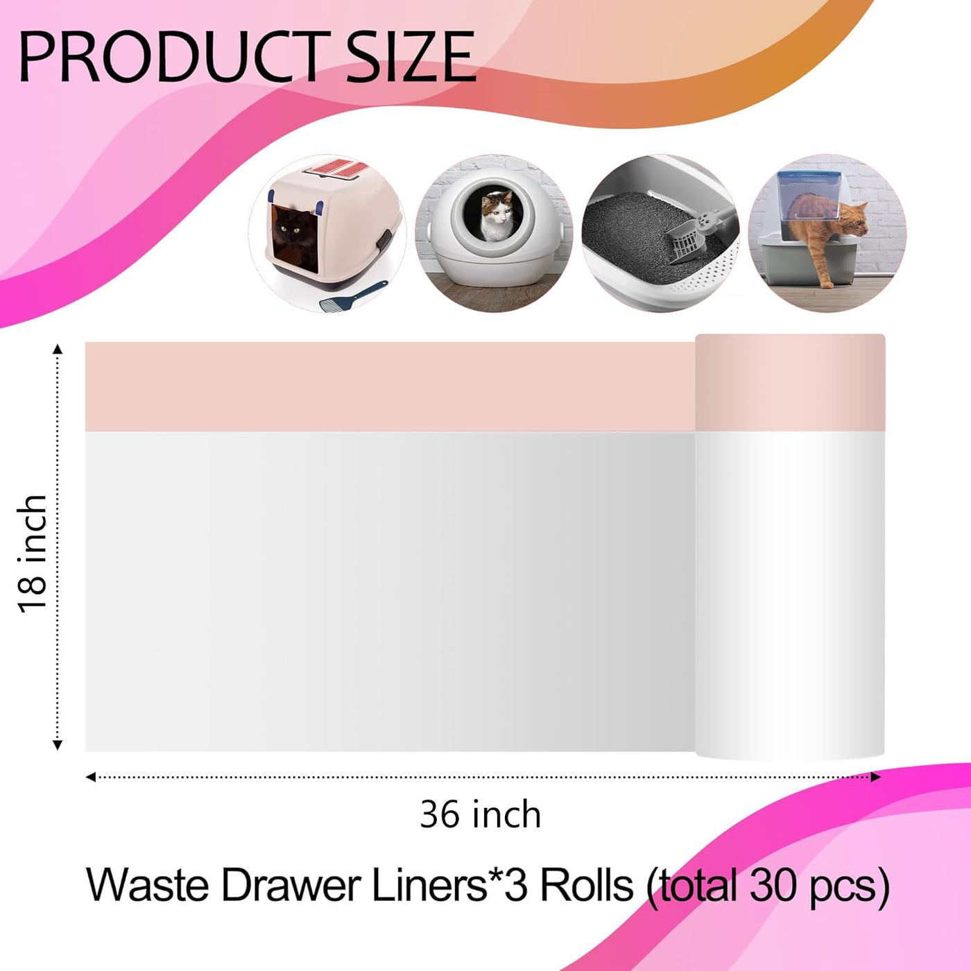 36 X 18 30 Count Cat Litter Box Liner Bags And Replaced Trash Bags, Thick Heavy Duty Drawstring Replacement Waste Drawer Liners 36 X 18 , Wider And Longer: Naielfopet Cat Waste Liners Are Large Size Fits Most Litter Trays, Such As Flip-Up Type Open Type, High Back, Drawer Type. Providing Ample Coverage For Your Cat'S Litter Box. Each Liner Measures 36 X 18, Ensuring A Snug Fit And Minimizing The Risk Of Leaks. Premium Quality: The Litter Box Liners Are Strong And Durable, Made Of High-Quality Ldpe Material, Non-Toxic And Odorless, Thickened And Durable, Providing Long-Lasting Protection Against Leaks And Tears. Our Liner Bags Are Scratch-Resistant And Waterproof, Keeping Your Litter Box Clean, Providing Convenience When Disposing Of Cat Waste. Drawstring Design: Drawer Liners Bags Come Equipped With Robust Drawstring Handles For Effortless Disposal, Making Them Easy To Remove And Replace. This The Cat Litter Liner Also Helps To Contain Any Odors And Keeps The Litter Box Clean. Thickened Heavy Duty: Our Cat Litter Bags Is 5 Mils(Most Drawstring Replaced Trash Bag Waste Bags In The Market Are 1Or 2 Mils), Can Hold Up To 10 Kilograms Of Cat Litter, No Need To Worry About Damage Or Rupture During Use. Package Include: This Package Contains 3 Rolls Of 10 Count Cat Litter Bags, 30 Litter Box Liners In Totall, Unscented, 36 X 18.
