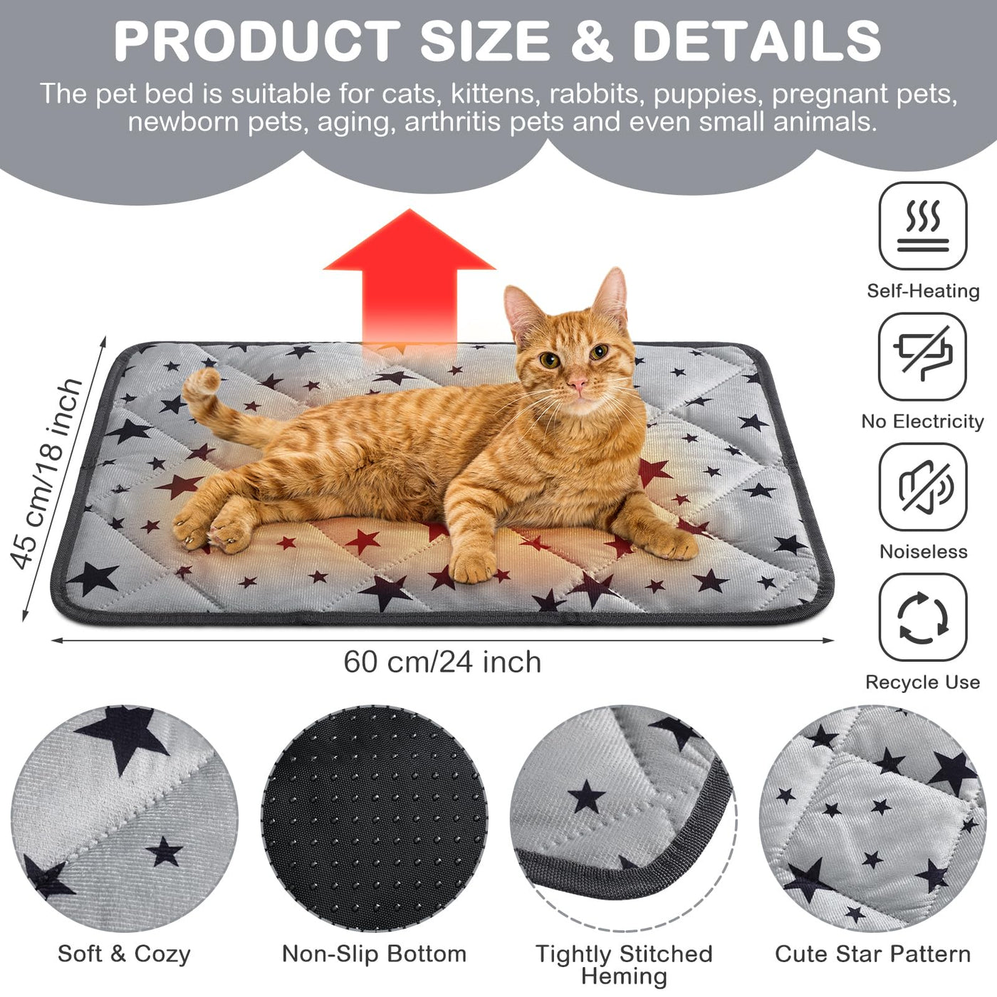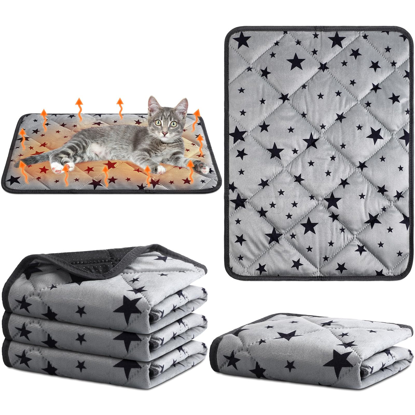 Namalu 4 Pack Self Warming Cat Bed Self Heating Cat Mat Star Pattern Soft Dog Crate Pad Thermal Pet Mat Anti Slip Kennel Washabl