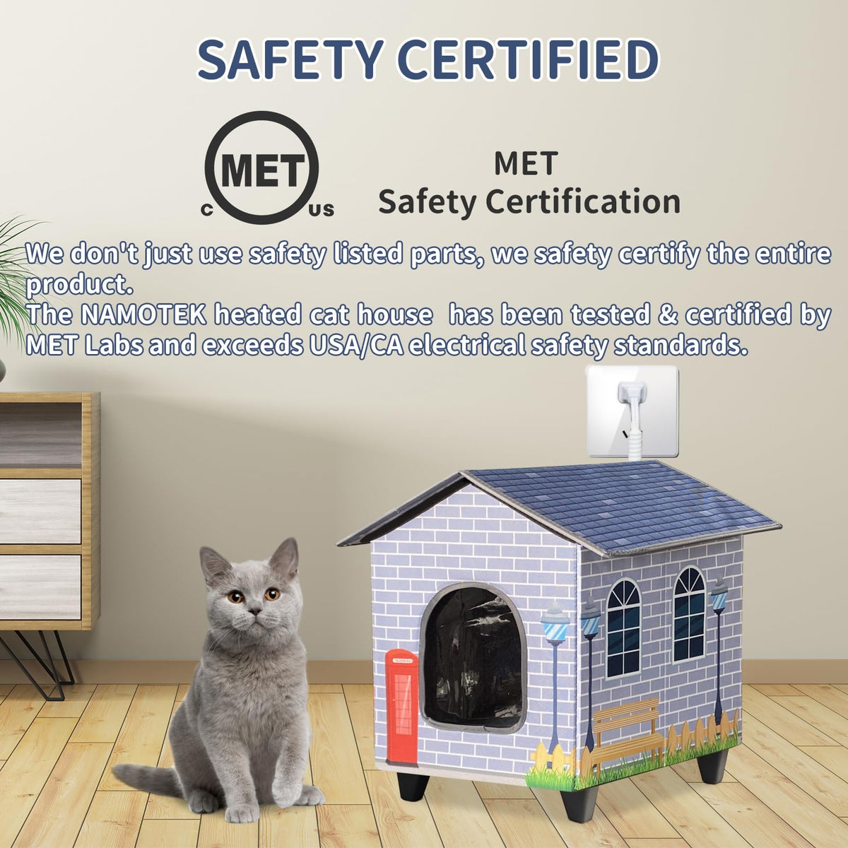 Namotek Heated Cat Houses For Indoor/Outdoor Cats With Elevated Heated Cat Bed Providing Safe Feral Cats, Easy To Assemble Small