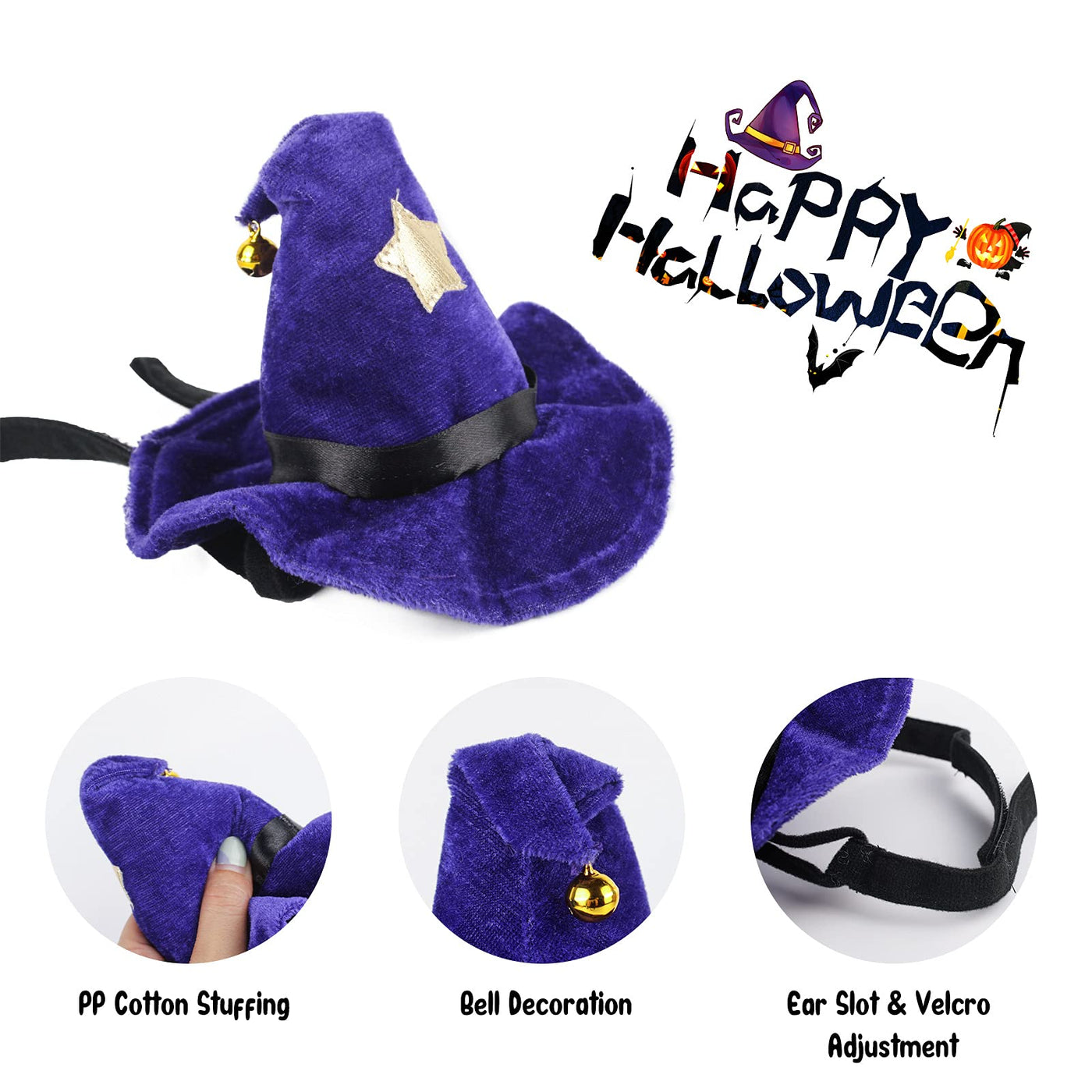 NAMSAN Cat Witch Hat, Funny Cat Halloween Costumes, Doggy Wizard Hat Outfit with Bell, Sorcerer Hat for Cats Small Dogs Cosplay
