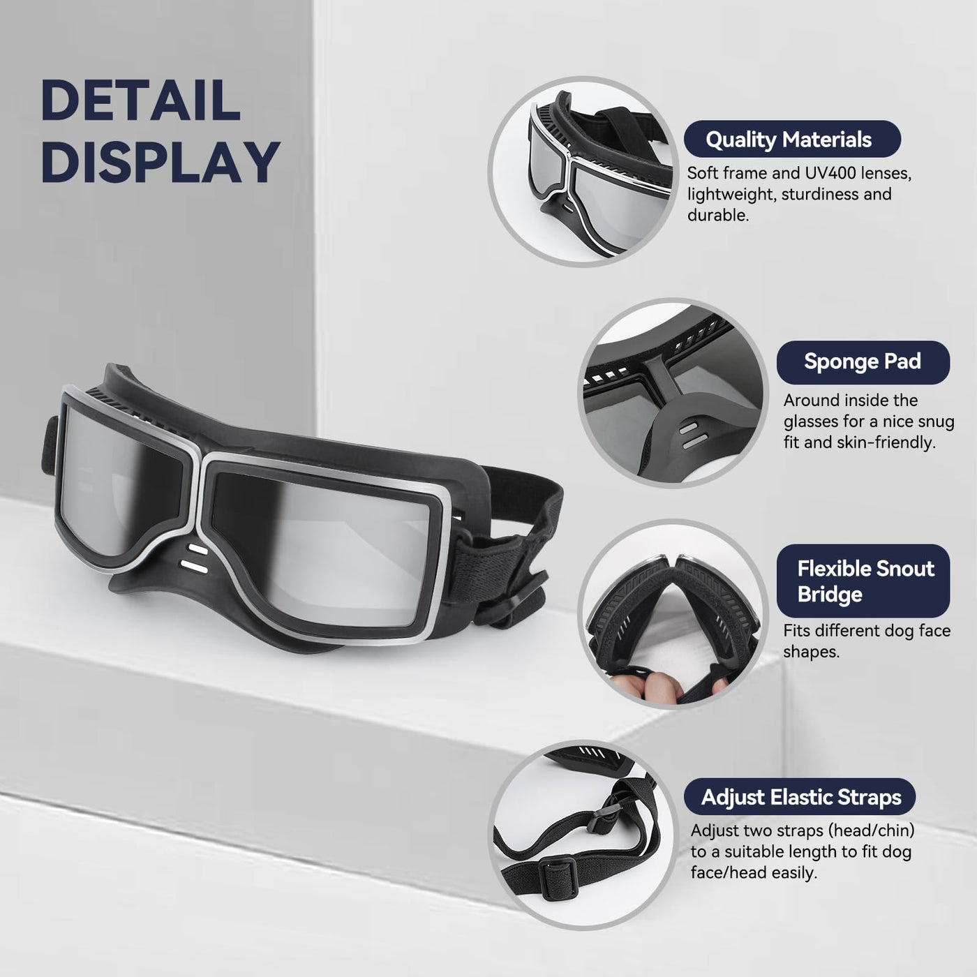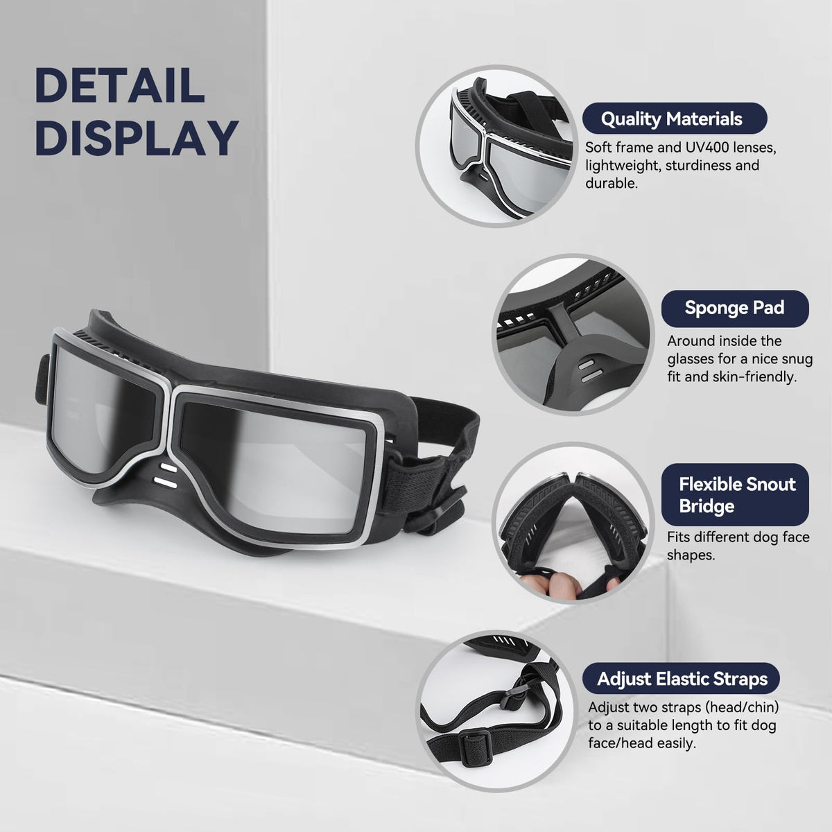 Dog Goggles Medium To Large Breed, Wide Snout, Anti-Uv Doggie Sunglasses, Windproof Antifog Dog Eye Protection, Driving Pet Goggles For Large Dogs, Adjustable, Black