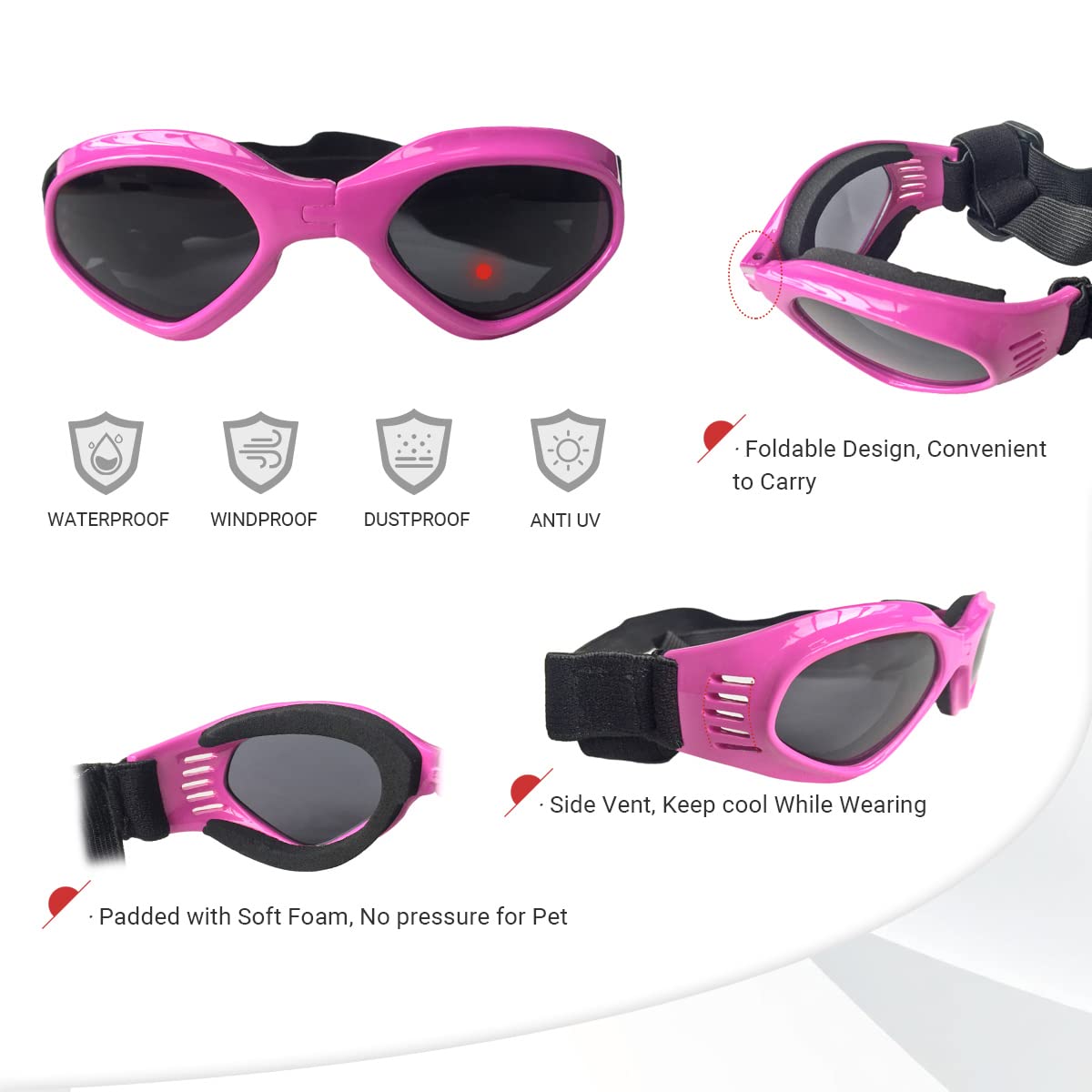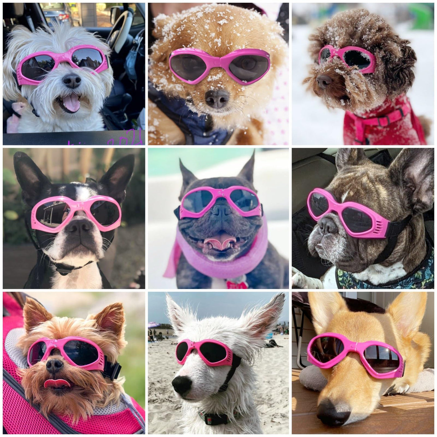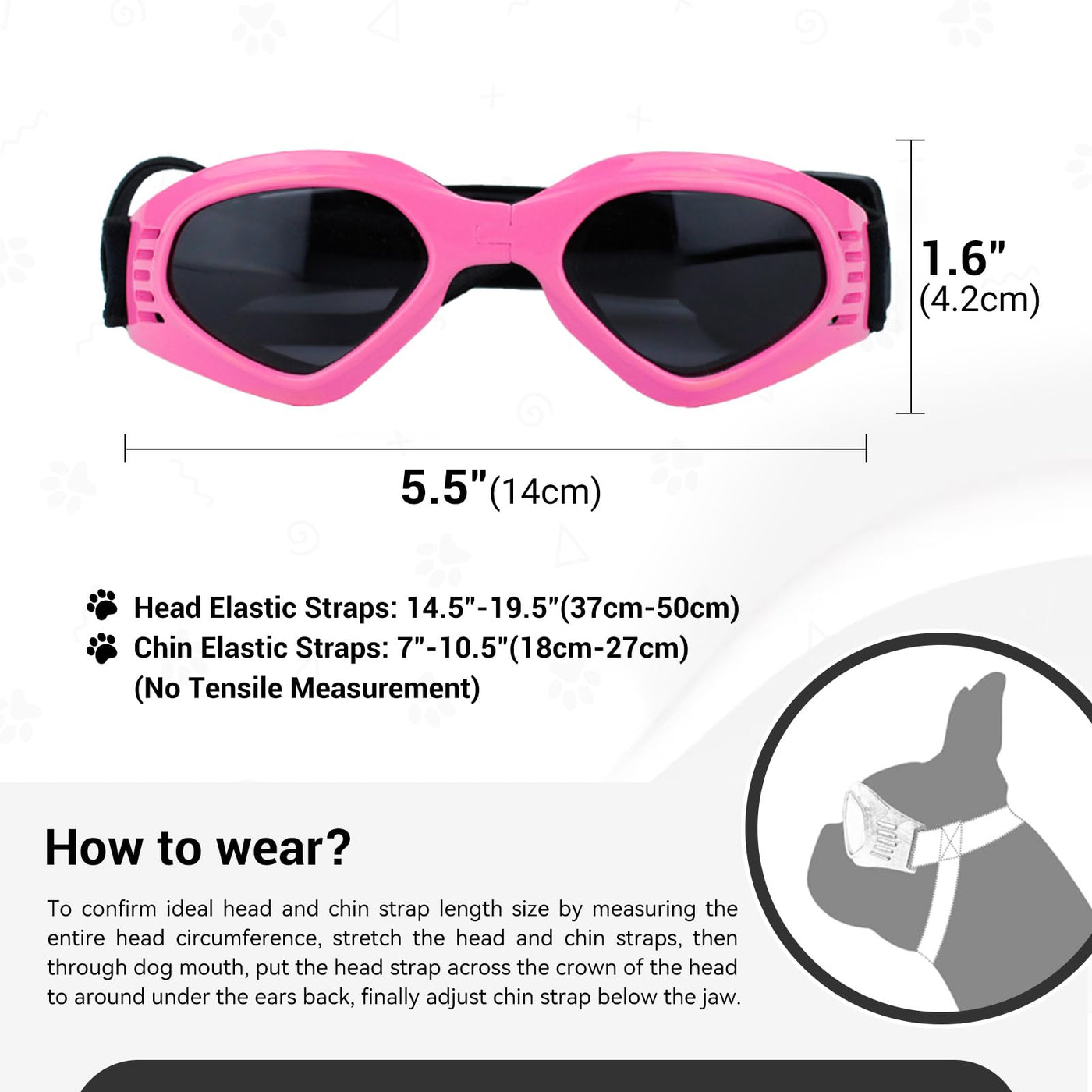 Namsan Dog Sunglasses Medium Breed Uv Protection Dog Goggles For Small To Medium Dogs Windproof Anti-Fog Snowproof Puppy Glasses, Easy Wear/Adjustable (Pink)