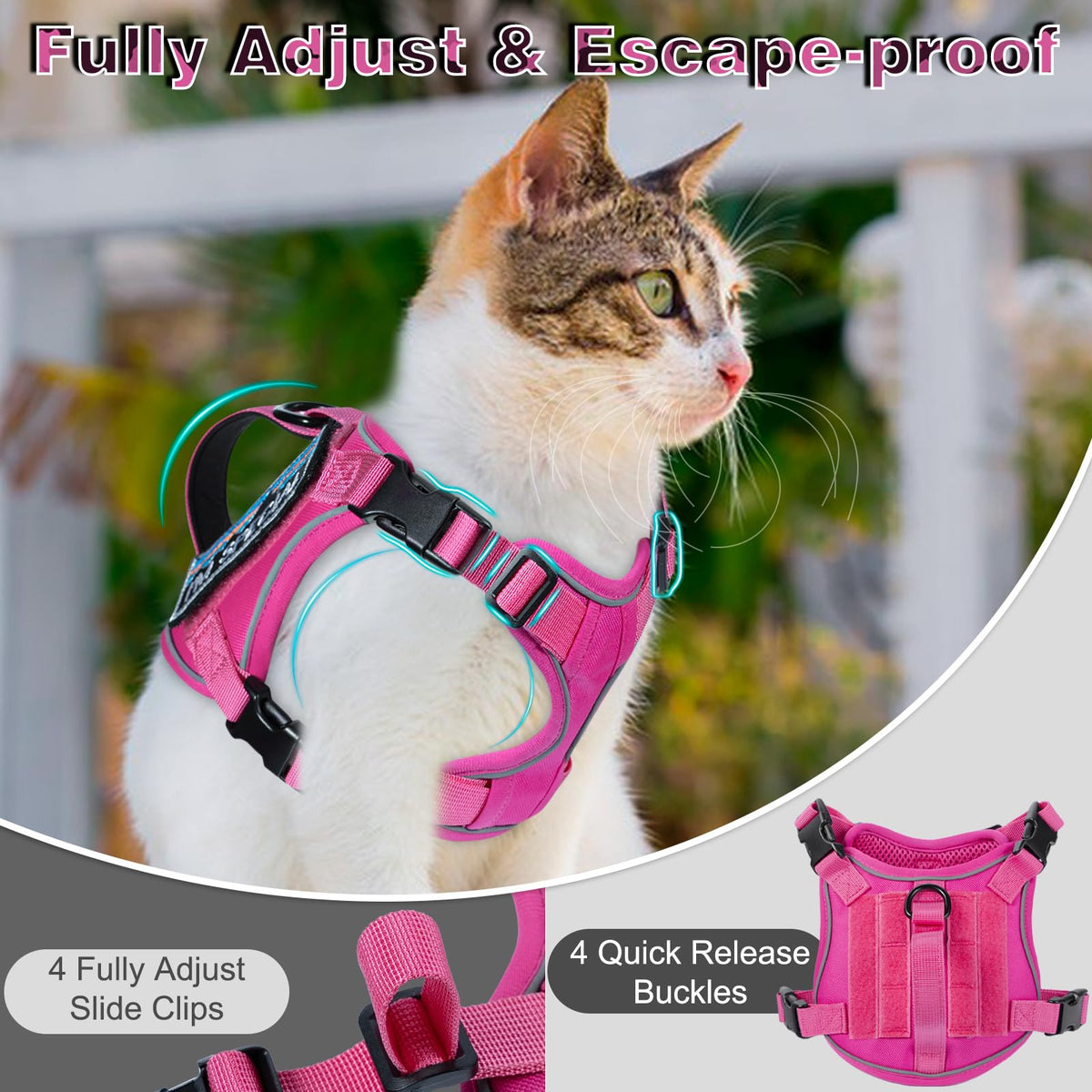 Tactical Cat Harness-Made Of 1050D Nylon Material With Reinforced Stitchingsoft Breathable Mesh Paddednylon Control Handle For Quick Controlstainless D-Ring For Cat Leash Attachment4 Quick-Release Buckle For Easy Put On/Off4 Straps For Fully Adjustable To Allow Your Pet To Growth Furthermagic Sticker Area On Both Side Of The Vest For Placing Personality Patches,Flags.Size Info: Neck Girth: 9 -12.6 , Chest Girth: 13.7-19 Friendly Note:1. Please Accurately Measure Your Pet And Refer To The Size Guide Before Purchase.2. Lf You'Re Between Sizes, Go For The Bigger Size If Your Cat Is Still Growing, Or The Smaller Size If They Are Not.(To Prevent Your Cat From Easily Escaping When Outdoors.)100% Satisfaction : If You Have Any Quality And Size Problems, Please Feel Free To Contact Us And We Will Give You A Satisfactory Answer.