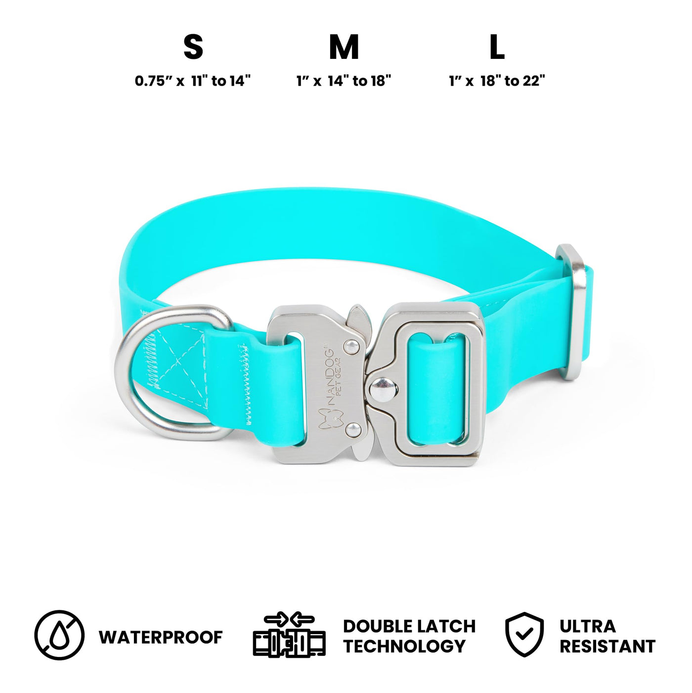 Nandog The Signature Collection Waterproof Poly-Flex Sport Dog Collar In Medium, Aqua Blue - Durable & Adjustable - Secure Doubl