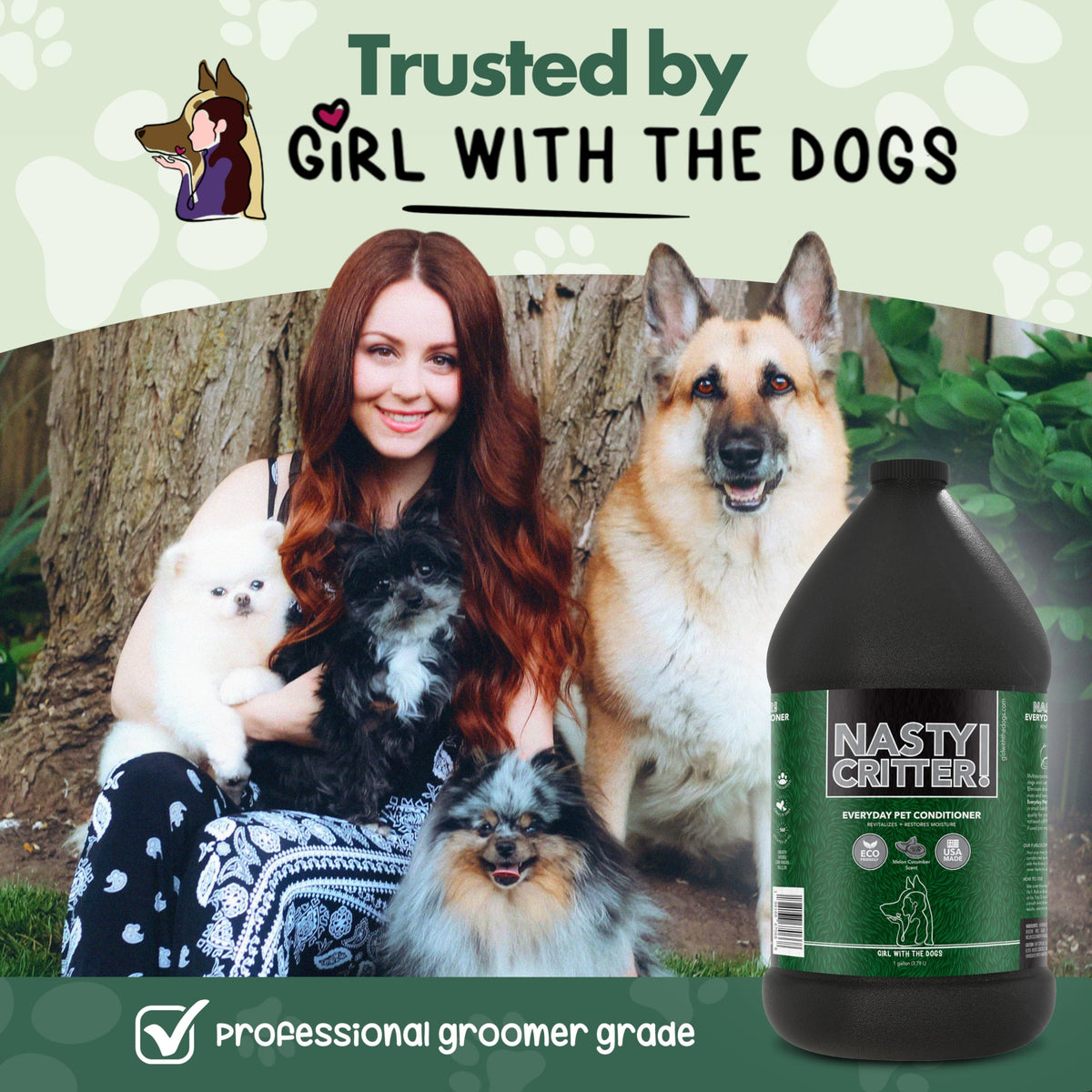 Introducing Nasty Critter! By Girl With The Dogs - Everyday Deep Cleaning Dog Conditioner, The Ultimate Solution For All Your Pet Grooming Needs. Trusted By Professionals And Featured By Girl With The Dogs, Our Dog Conditioner Is Specially Formulated To Cater To A Variety Of Coat Types And Conditions. Whether You Need A Dog Conditioner For Allergies And Itching Or A Shea Moisture Conditioner For Added Softness, Nasty Critter! Has You Covered. Our Conditioner For Dogs Is Perfect For Moisturizing And Revitalizing Your Pet'S Skin And Coat, Leaving It Soft, Shiny, And Tangle-Free. Designed To Work Seamlessly With Girl With The Dogs Pet Grooming Products, This Dog Hair Conditioner Is A Versatile Addition To Your Grooming Routine. Not Just For Dogs, Nasty Critter! Also Serves As An Excellent Cat Conditioner, Ensuring All Your Furry Friends Enjoy The Best Care Possible. For A Complete Grooming Experience, Pair Our Conditioner With Nasty Critter! Everyday Deep Cleaning Pet Shampoo, And Nasty Critter! Mild Cucumber Pet Cologne. Say Goodbye To Tough Mats And Tangles With Our Dog Conditioner Detangler. The Lightweight Formula Makes Grooming Sessions A Breeze, While The Gentle, Natural Ingredients Provide Effective Care Without Harsh Chemicals. Ideal For Pets With Sensitive Skin, Nasty Critter! Is Compatible With Hypoallergenic Dog Shampoo And Conditioner. Perfectly Safe For Young Pets, Our Conditioner Is A Must-Have In Your Dog Essentials For Puppies. Use It As A Puppy Conditioner For Small Dogs Or A Dog Detangler Conditioner To Keep Your Little One'S Coat Manageable And Healthy. It'S Also Highly Effective As A Golden Retriever Conditioner, Poodle Conditioner, And Dog Coat Conditioner, Ensuring Your Pet'S Coat Looks Its Best. Nasty Critter! Everyday Pet Conditioner Is 100% Biodegradable, Soap-Free, Eco-Friendly, And Cruelty-Free, Making It A Responsible Choice For Conscientious Pet Owners. Its Light, Refreshing Cucumber Scent Keeps Your Pet Smelling Fresh Without Being Overpowering. For Ongoing Care, Our Conditioner For Dogs Can Be Used As A Dog Leave In Conditioner, Making It A Versatile Grooming Essential. Economical And Easy To Use, Simply Dilute 16 Parts Water To 1 Part Conditioner For A Cost-Effective Solution That Ensures Your Pets Always Look Their Best. Whether You Need A Deshedding Dog Conditioner, A Dog Hair Conditioner Detangler, Or A General Dog Hair Conditioner, Nasty Critter Provides The Ultimate Grooming Solution. Experience The Difference And Give Your Pet The Pampering They Deserve With Nasty Critter! Everyday Pet Conditioner.