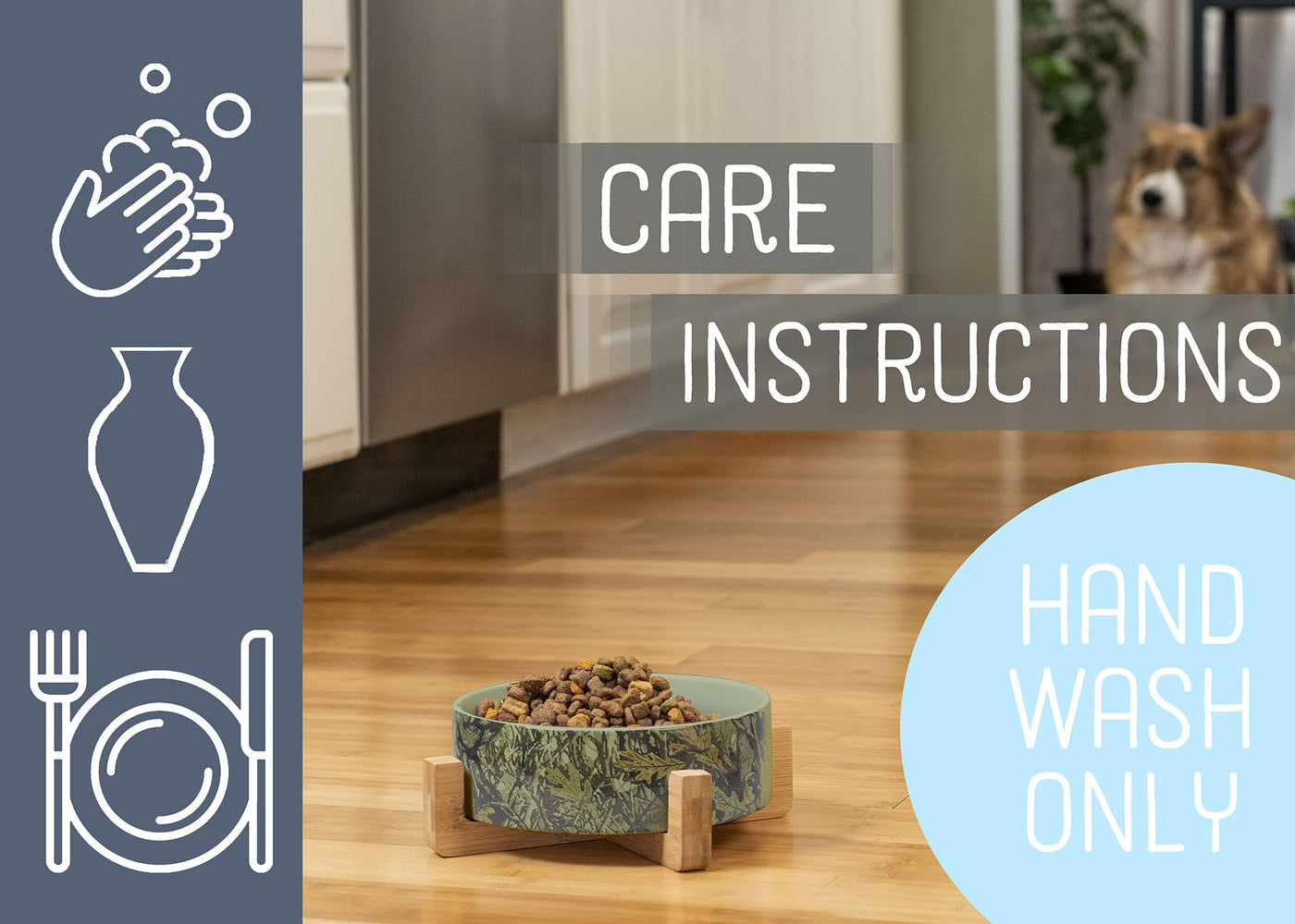 Nat & Jules Large Hunting Camo 8 Inch Stoneware Ceramic And Wood Pet Bowl With Stand