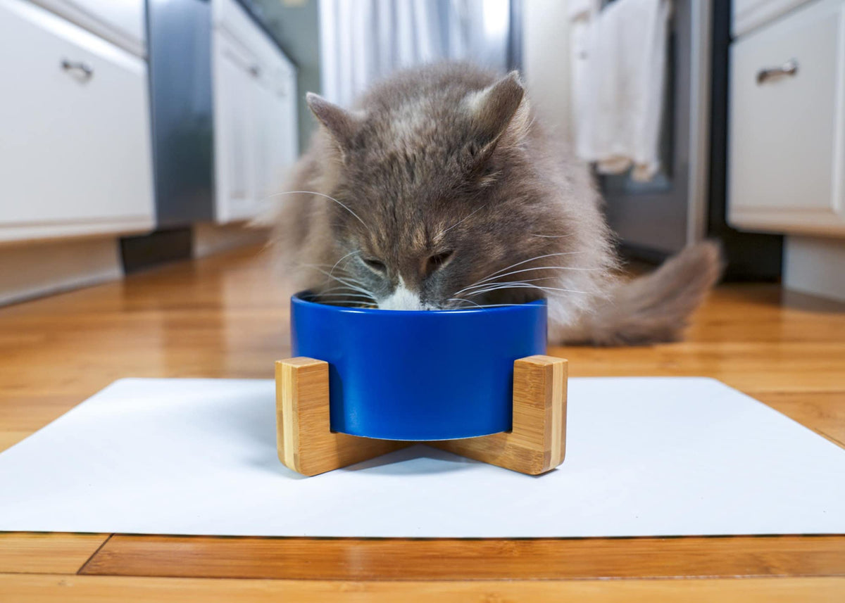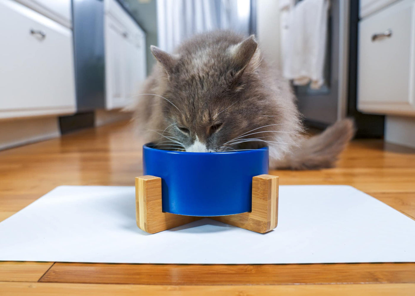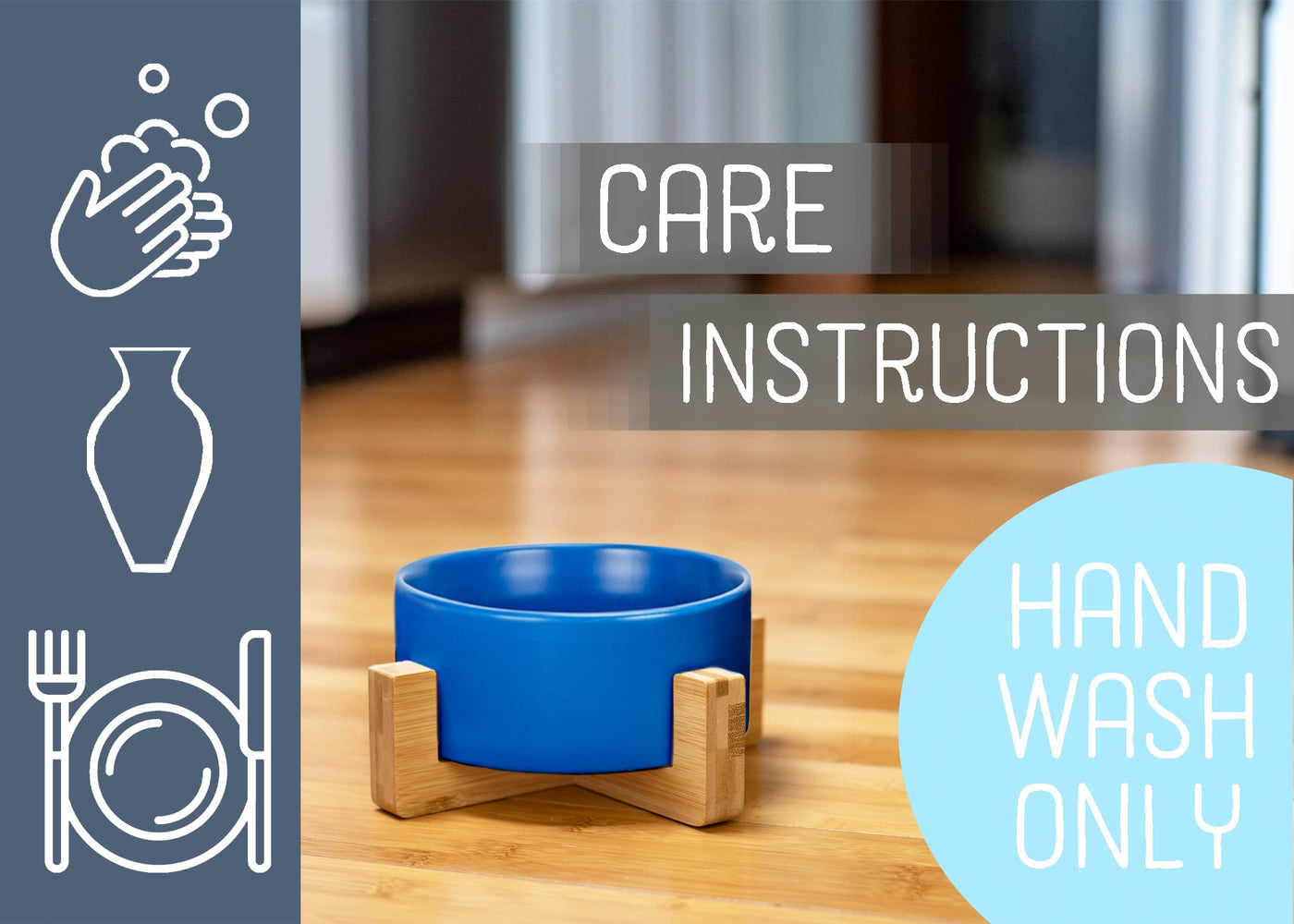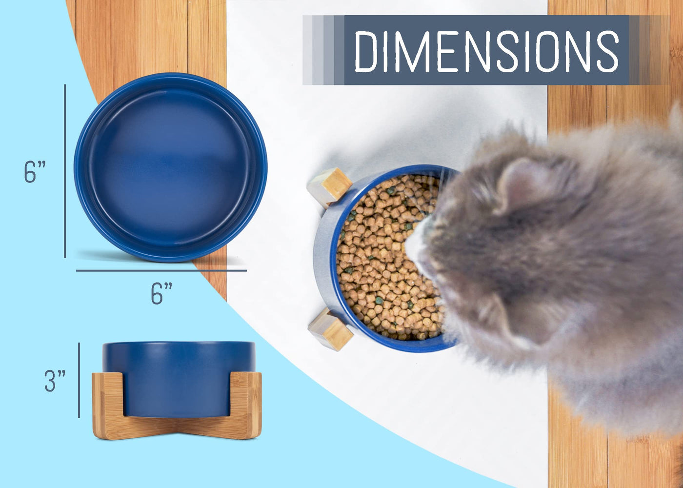 Nat & Jules Small Navy 6 Inch Stoneware Ceramic And Wood Pet Bowl With Stand