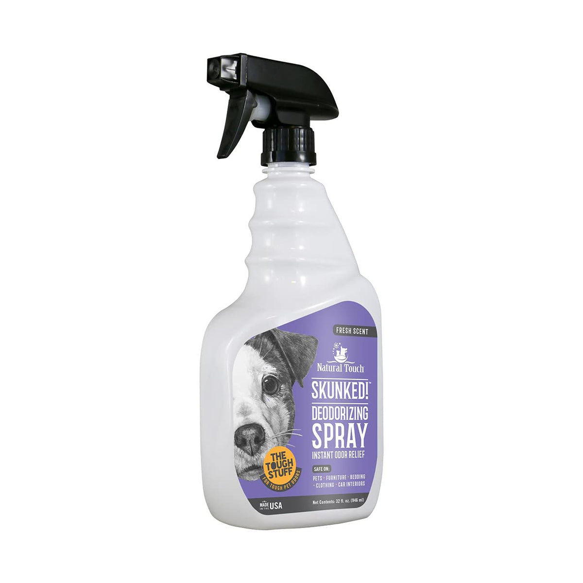 Q: What makes the Natural Touch Skunked Deodorizing Spray effective for odor removal?A: The Natural Touch Skunked Deodorizing Spray uses a proprietary formula infused with essential oils that provide immediate odor relief, making it particularly effective against tough odors like skunk spray.