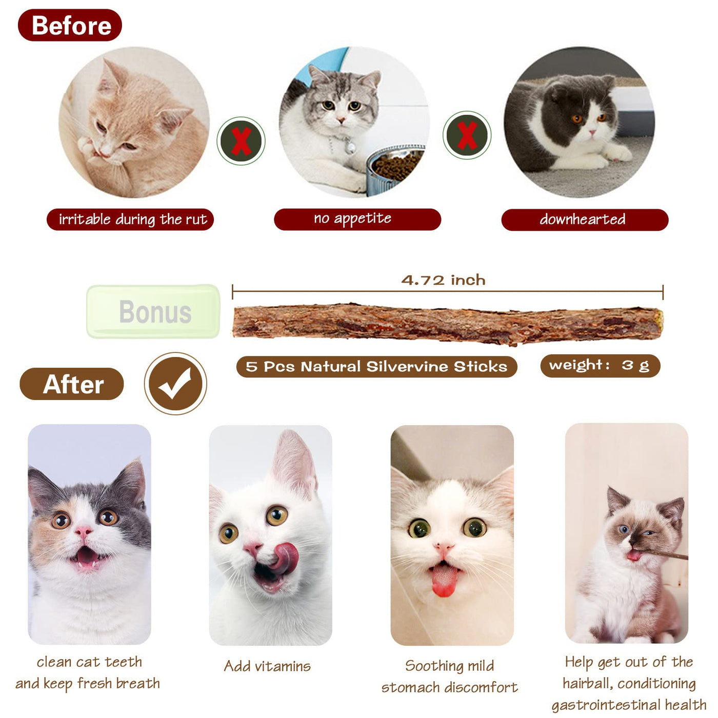 What A Great Way To Keep Your Cat Healthy And To Make Your Cat Have Fun Exerciser Playing? This Cat Teaser Comes With A Cute Pendant And A Bell With A Portable Stick. This Is A Fantastic Teaser Exercise Toy To Interact With Your Kitty For Play And Exercise, Keep Your Kitten Healthy And Active While Having Fun By Yourself. Specification: Rod Length: Approx.16Inch / 40Cm Flexible Wire Length: Approx. 24Inch / 60 Cm Material: Natural Wooden Stick + Cotton + Feather + Metal Bell Easy To Grip, Safe And Convenient 3 Pieces Wand Cat Toy - With Cat Teaser Toy, The Cat Of All Ages Can Get A Lot Of Fun. You Can Enjoy Hours Of Play With Your Cat In A Super Fun. What A Wonderful And Fun Way To Interact With Your Cat. 5 Pieces Catnip Sticks - These Chewing Sticks Facilitate Dental Hygiene And Teeth Cleaning By Exfoliating Plaque On Your Teeth. Catnip Chewing Sticks Are Good For Dental Hygiene And Oral Care For Cats, Improves Oral Hygiene, Prevents Oral Diseases. Package Include: 3 X Cat Toys Wand 5 X Catnip Sticks