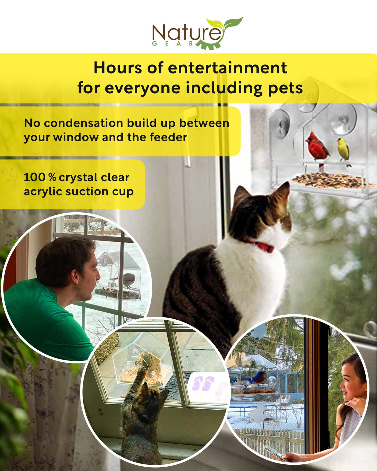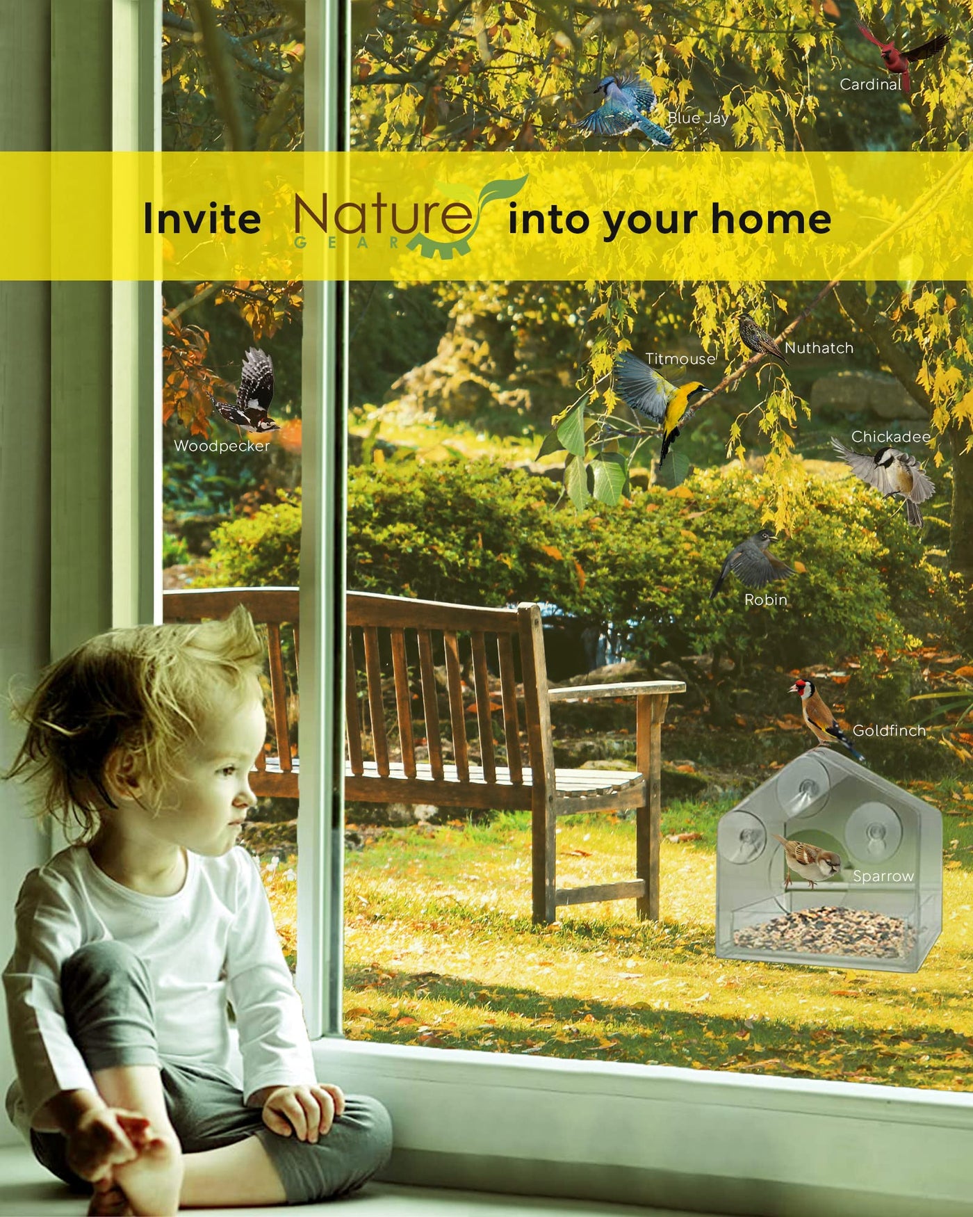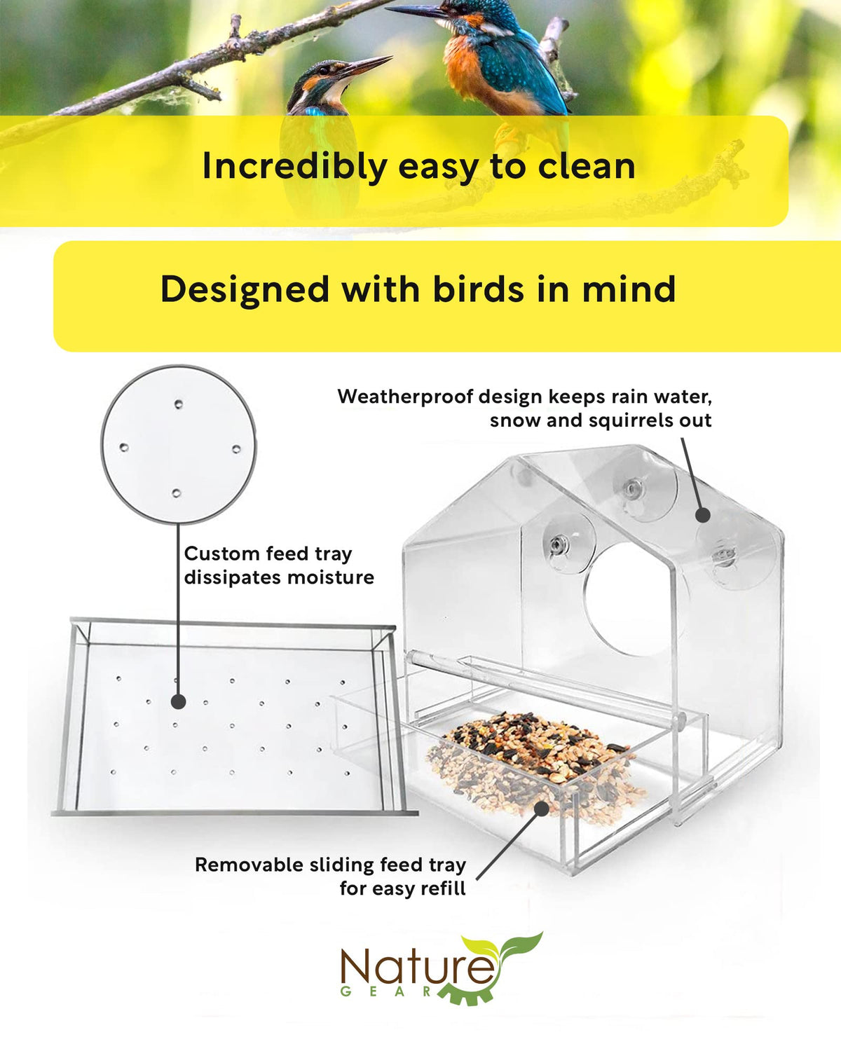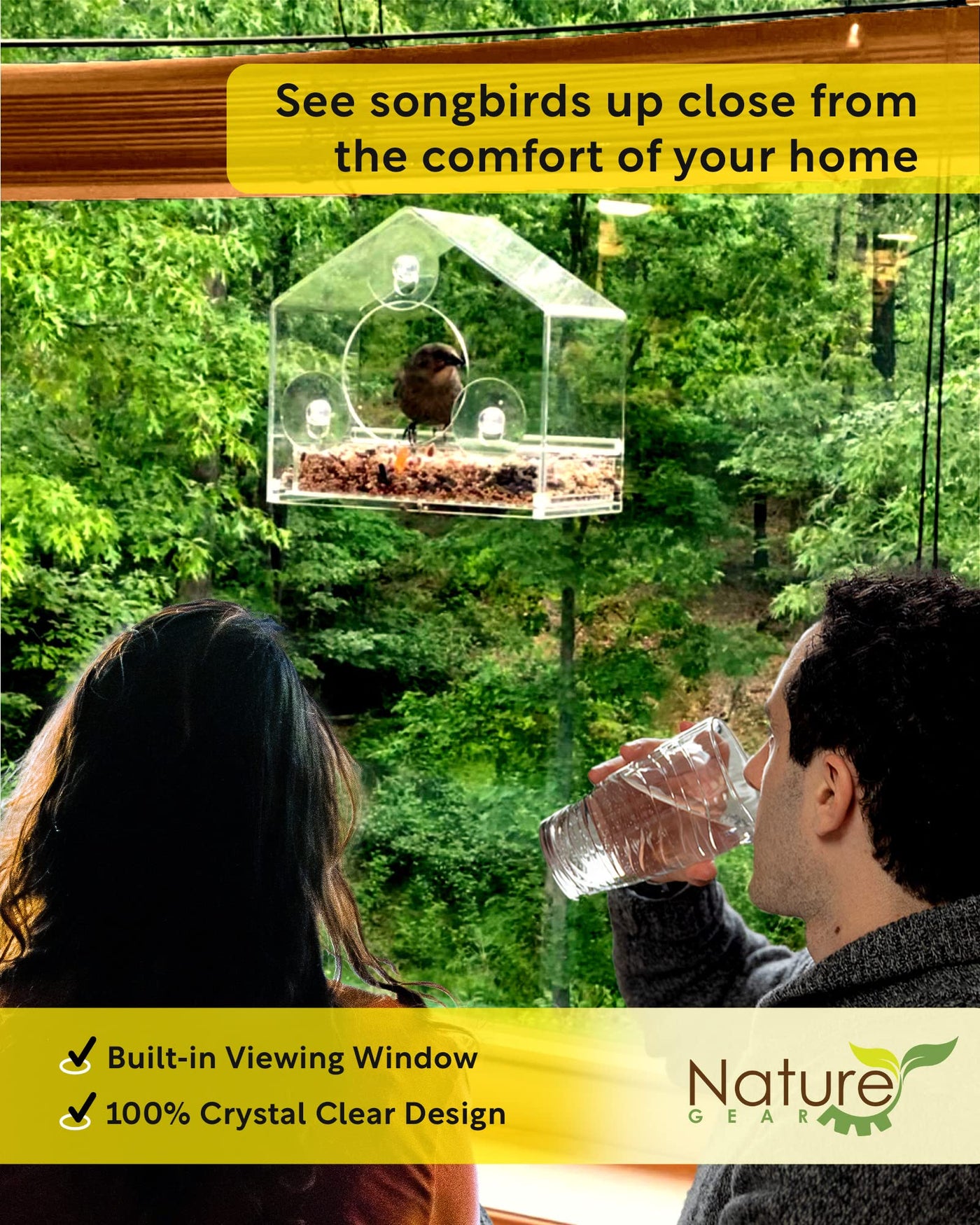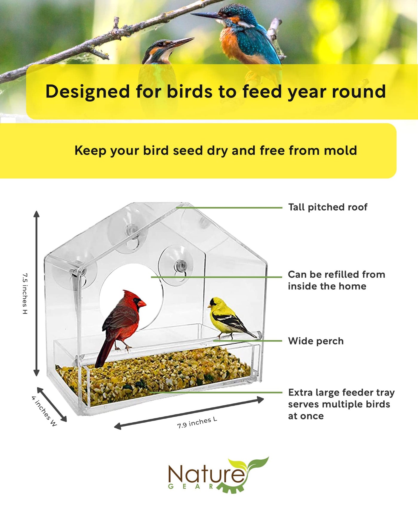 clear Window Bird Feeder with Strong Suction cups Acrylic Window Mounted Bird Feeder with Refillable Sliding Tray Weather Proof Snow and Squirrel Resistant Bird Feeder for Window by Nature gear