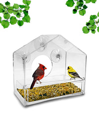Nature Gear Window Bird Feeder - Refillable Sliding Tray - Weather Proof - Snow And Squirrel Resistant - Drains Rain Water - See Songbirds From Home! (House Style) (House Model)