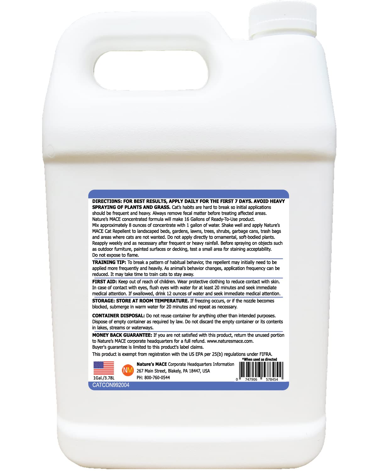 Natures MACE Cat Mace 1 Gallon Concentrate, Makes 16 Gallons, Cat Repellent Outdoor, Keep Cats Away, Indoor Spray, Keep Out of