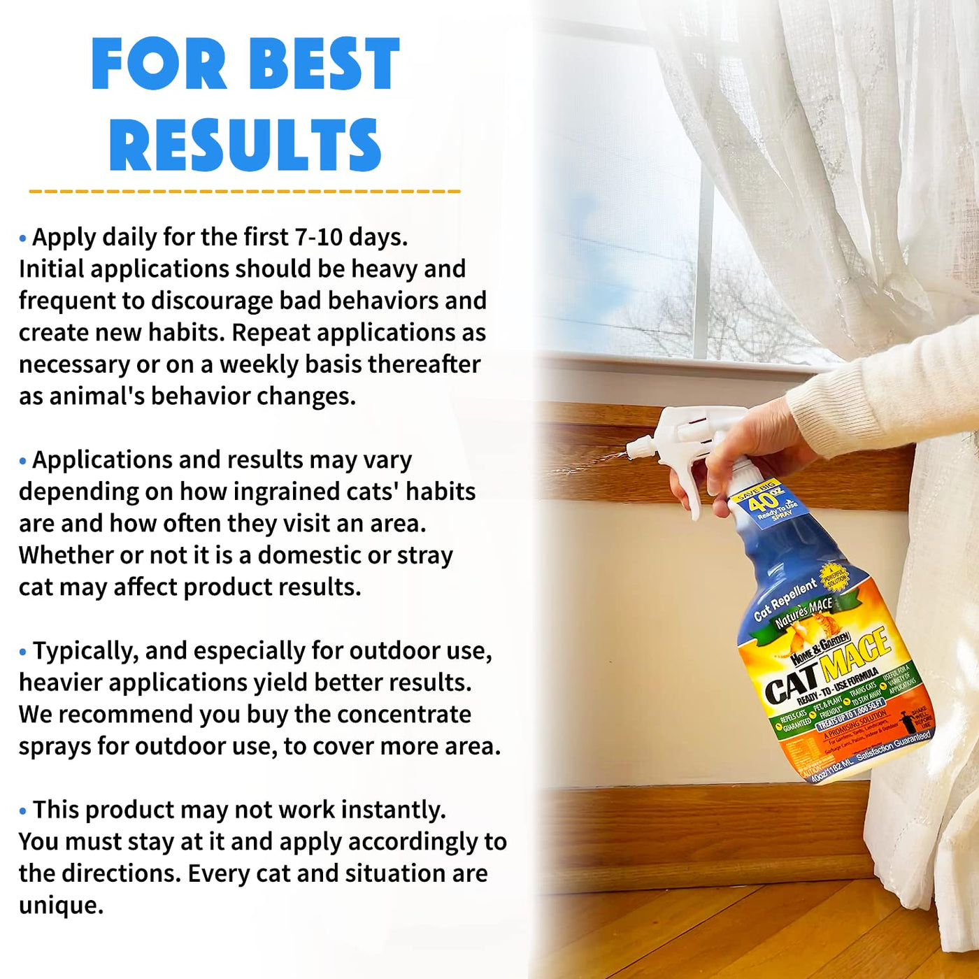 CAT TRAINING TOOL - Cat MACE is used as both a cat repellent and a powerful training tool for indoor and outdoor use. With frequent applications to start, and less over time; Cat MACE will target a cat