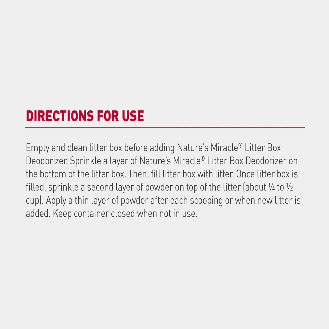 Cat Owners Everywhere Are All Too Familiar With The Dreaded Smell Of A Litter Box. Luckily, Nature'S Miracle Litter Box Deodorizer Aids Litter In Removing Tough Urine And Feces Odors Your Cat Leaves Behind. The Cat Odor Control Formula Is Designed To Be Used With All Litter Types, As Well As With Both Automatic And Manual Litter Boxes. The Litter Deodorizing Powder Has A Fresh Scent To Keep Your Litter Box Smelling Fresh And Crisp, Making It Ideal For Multi-Cat Homes. To Use, Simply Apply, Fill And Reapply! See Label For Complete Of Directions. Our Bottles Are Also Made With 25% Post-Consumer Recycled Material. Why Choose Natures Miracle Products? Natures Miracle Pet Stain And Odor Removers Have Been A Trusted Brand For Pet Mess Cleanup For More Than 40 Years. When Cute Pets Make Not-So-Cute Messes, You Can Rely On Natures Miracle Products To Get The Job Done.